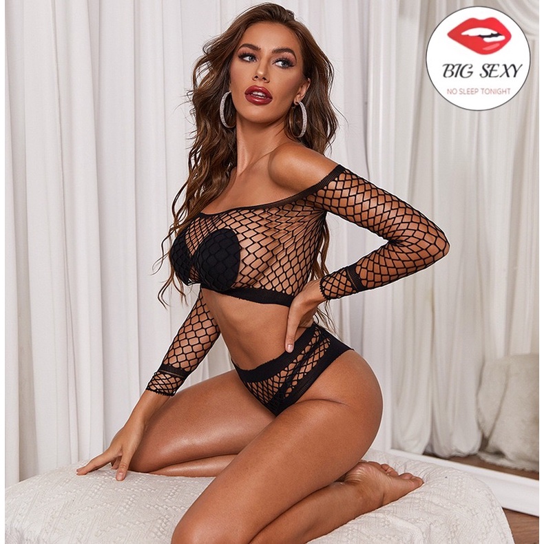 ชุดนอนไม่ได้นอน ชุดตาข่าย แบบเซ็ท 2 ชิ้น เปิดไหล่ S-779
