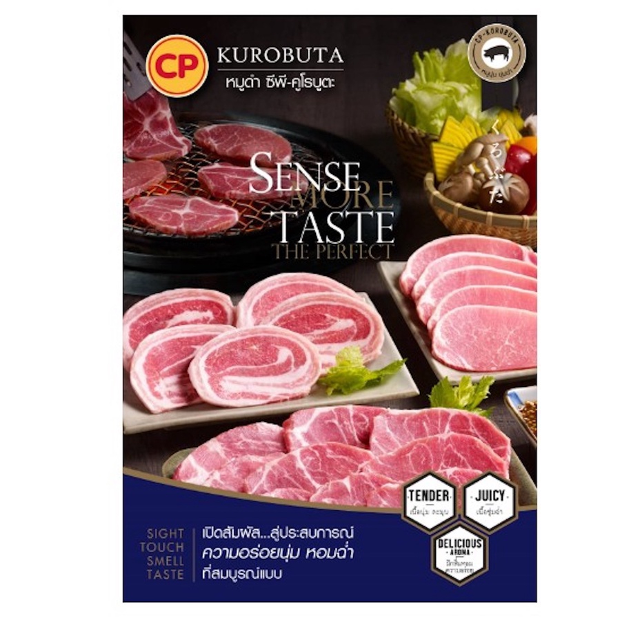 สเต๊กหมักซอสฮอตแอนด์สไปซี่ CP-KUROBUTA ขนาด 200 กรัม [แช่แข็ง]