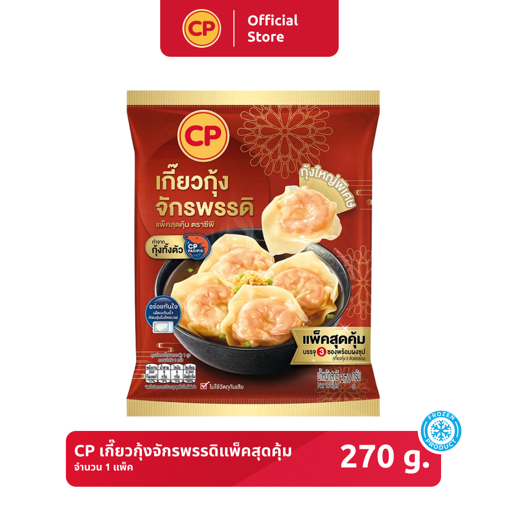 *ยกลัง* เกี๊ยวกุ้งจักรพรรดิแพ็กสุดคุ้ม CP ขนาด 270 กรัม [แช่แข็ง] จำนวน 6 แพ็ก