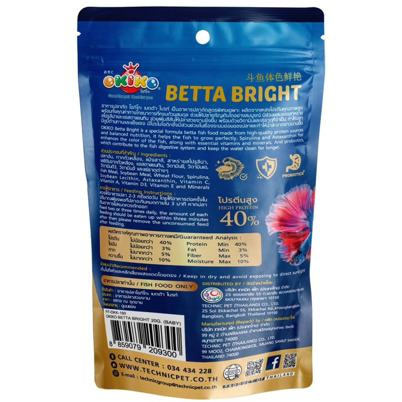 อาหารปลากัด Okiko Betta Bright Super Color FishFood ขนาด 20 กรัม