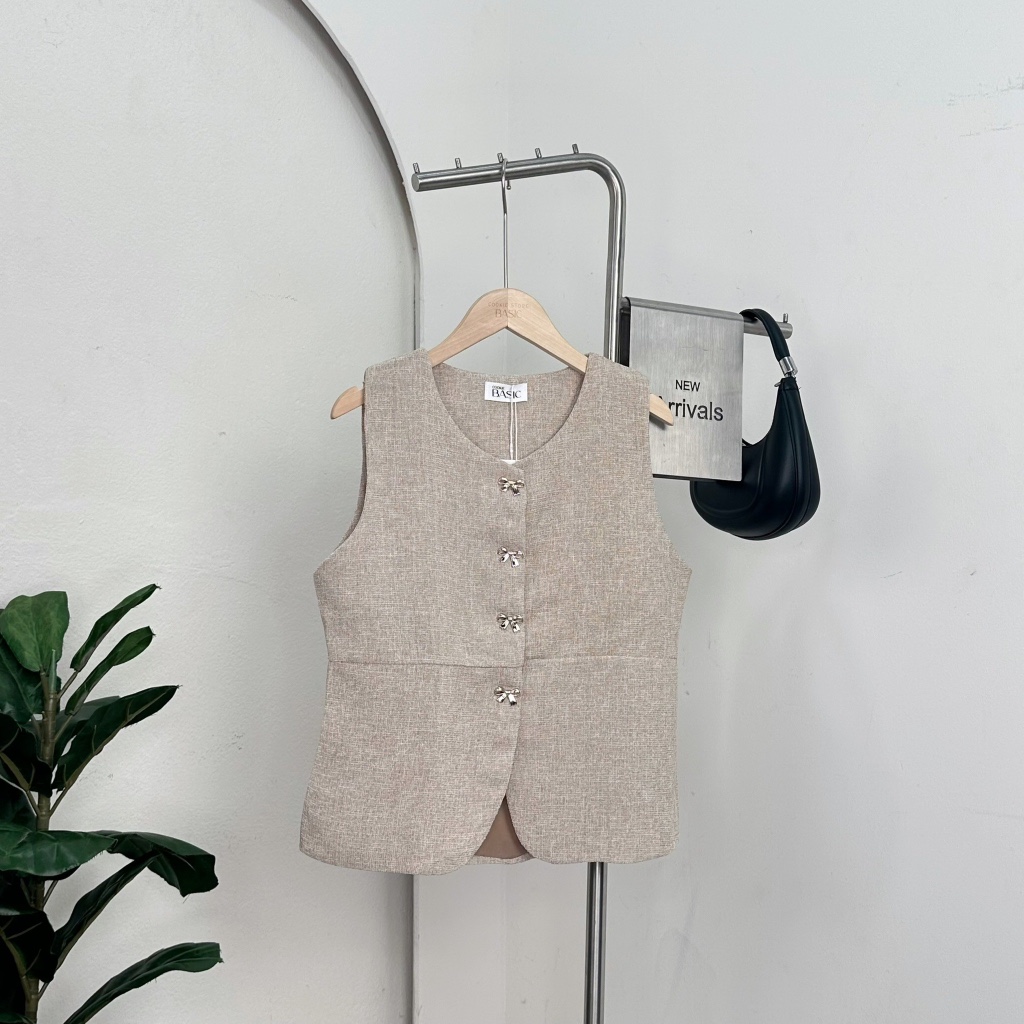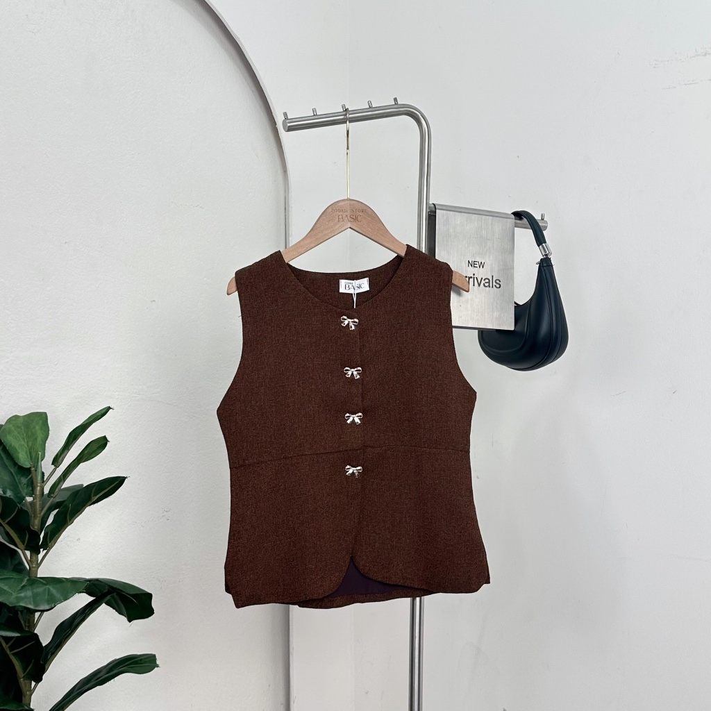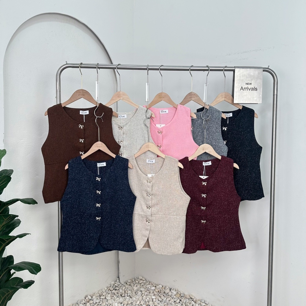 Mook_shop เสื้อVestทวิตแขนกุด แต่งกระดุมโบว์ เสื้อผ้าแฟชั่น เสื้อผ้าผู้หญิง