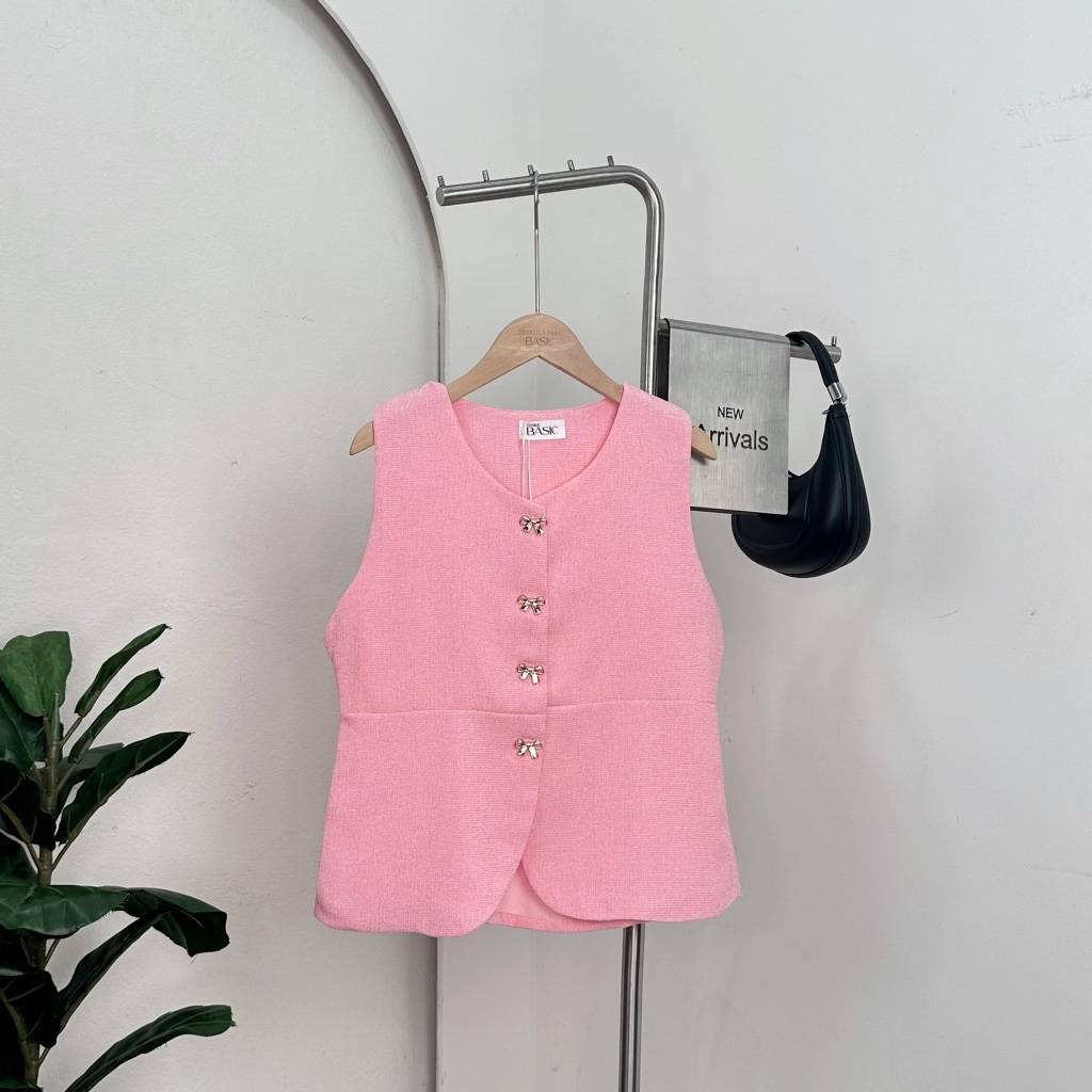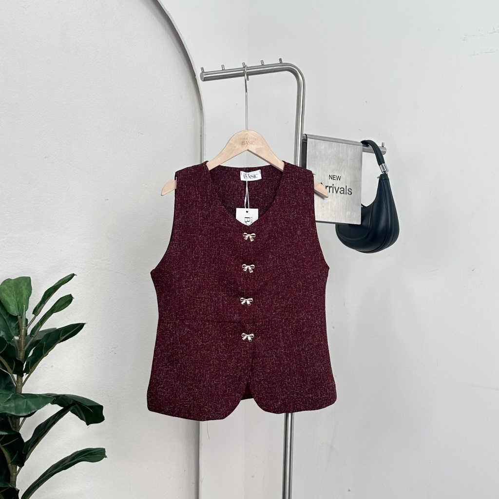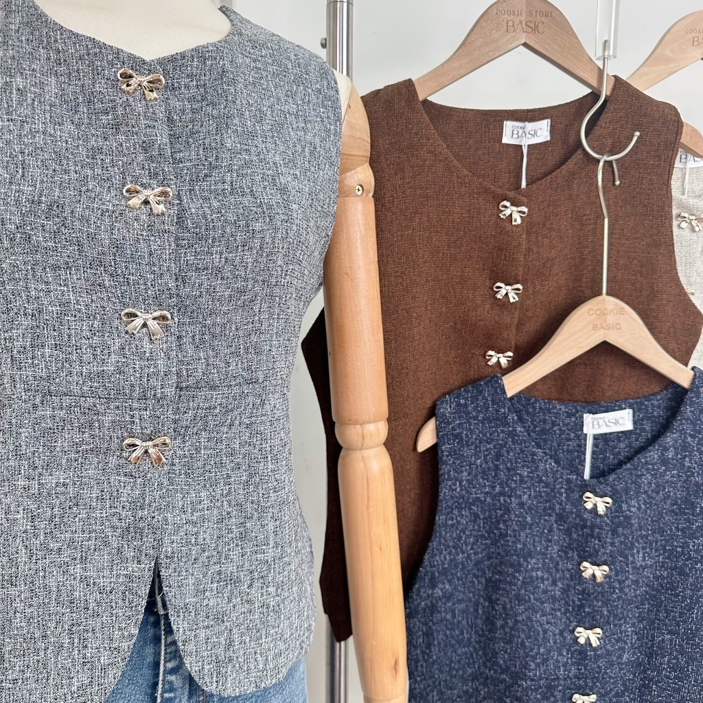 Mook_shop เสื้อVestทวิตแขนกุด แต่งกระดุมโบว์ เสื้อผ้าแฟชั่น เสื้อผ้าผู้หญิง