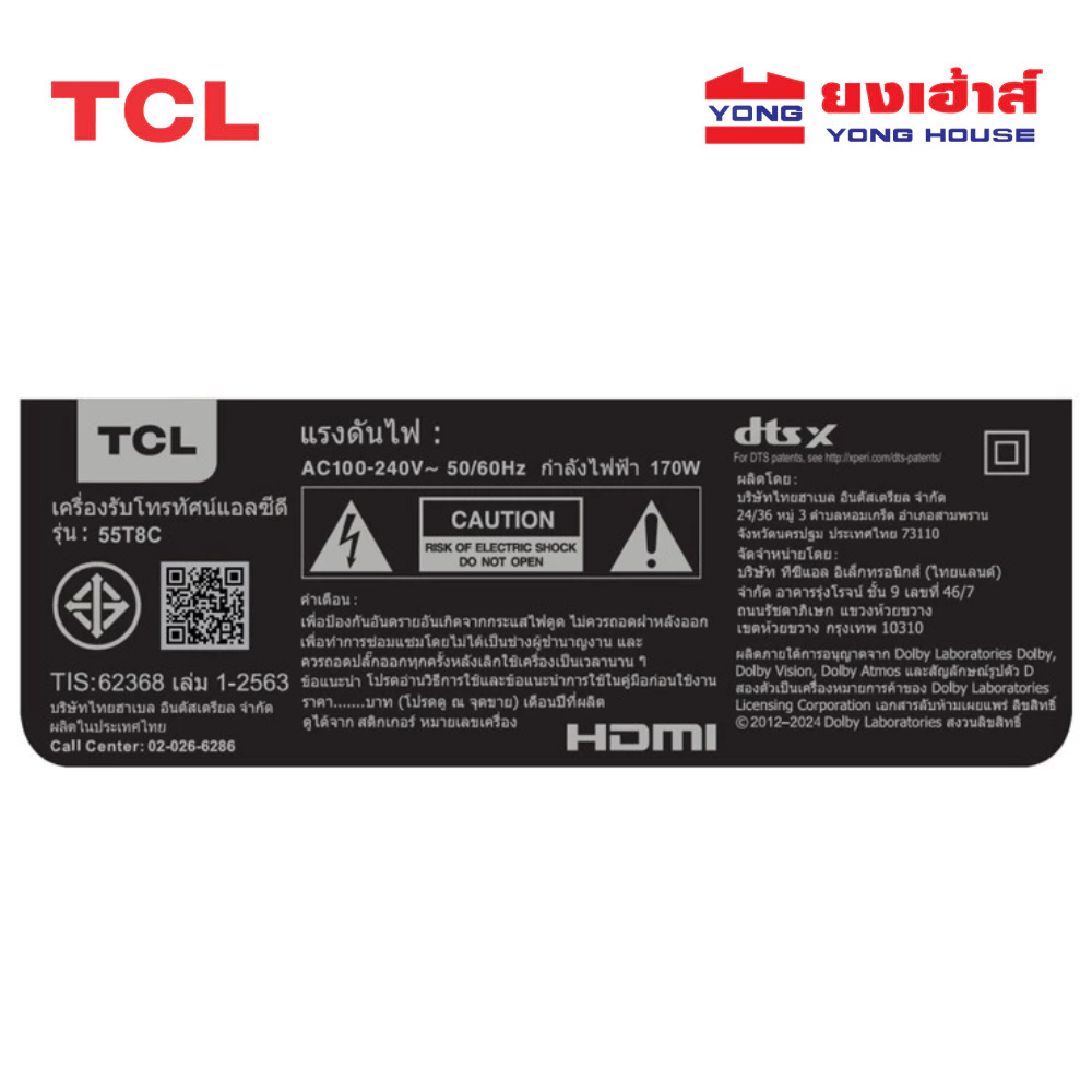 TCL TV รุ่น 55T8C ทีวี ขนาด 55 นิ้ว TCL QLED GOOGLE TV