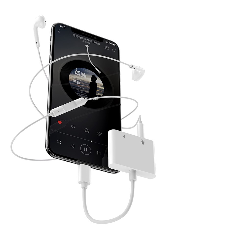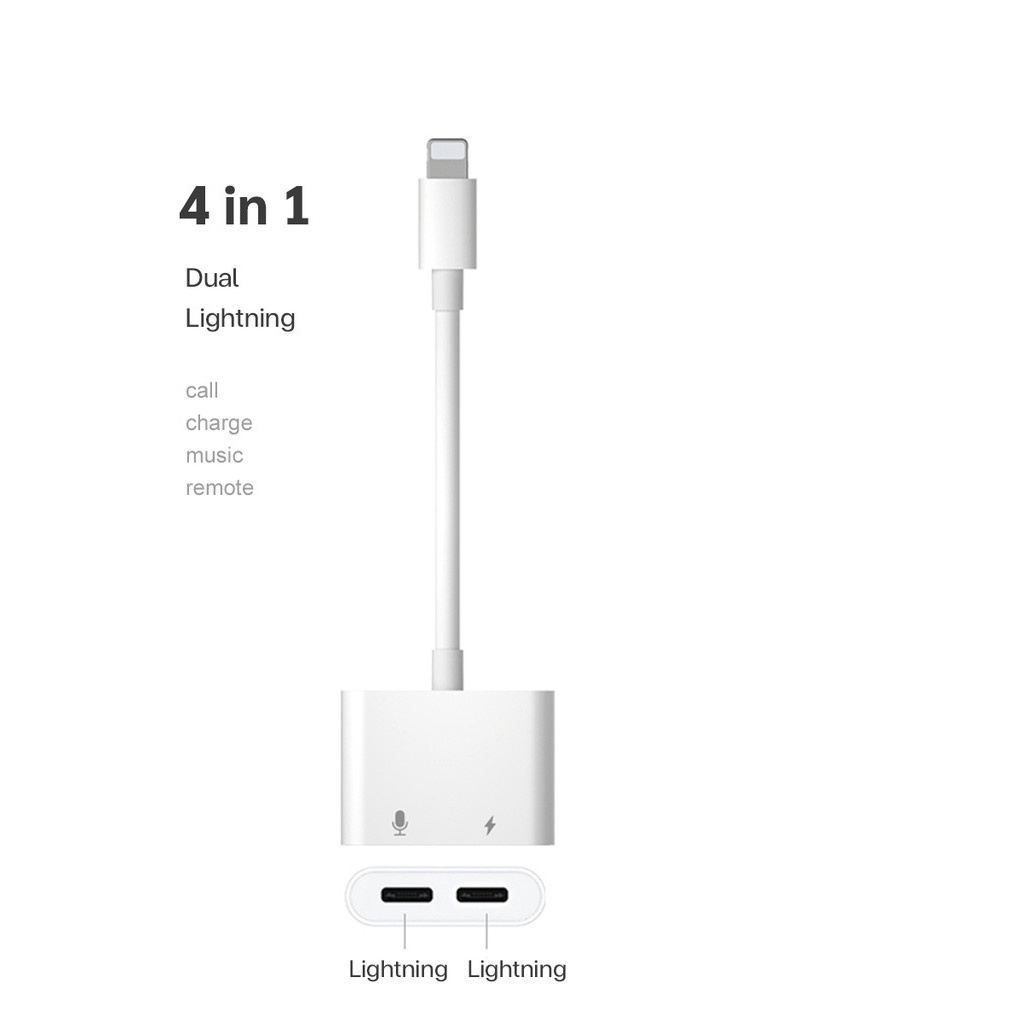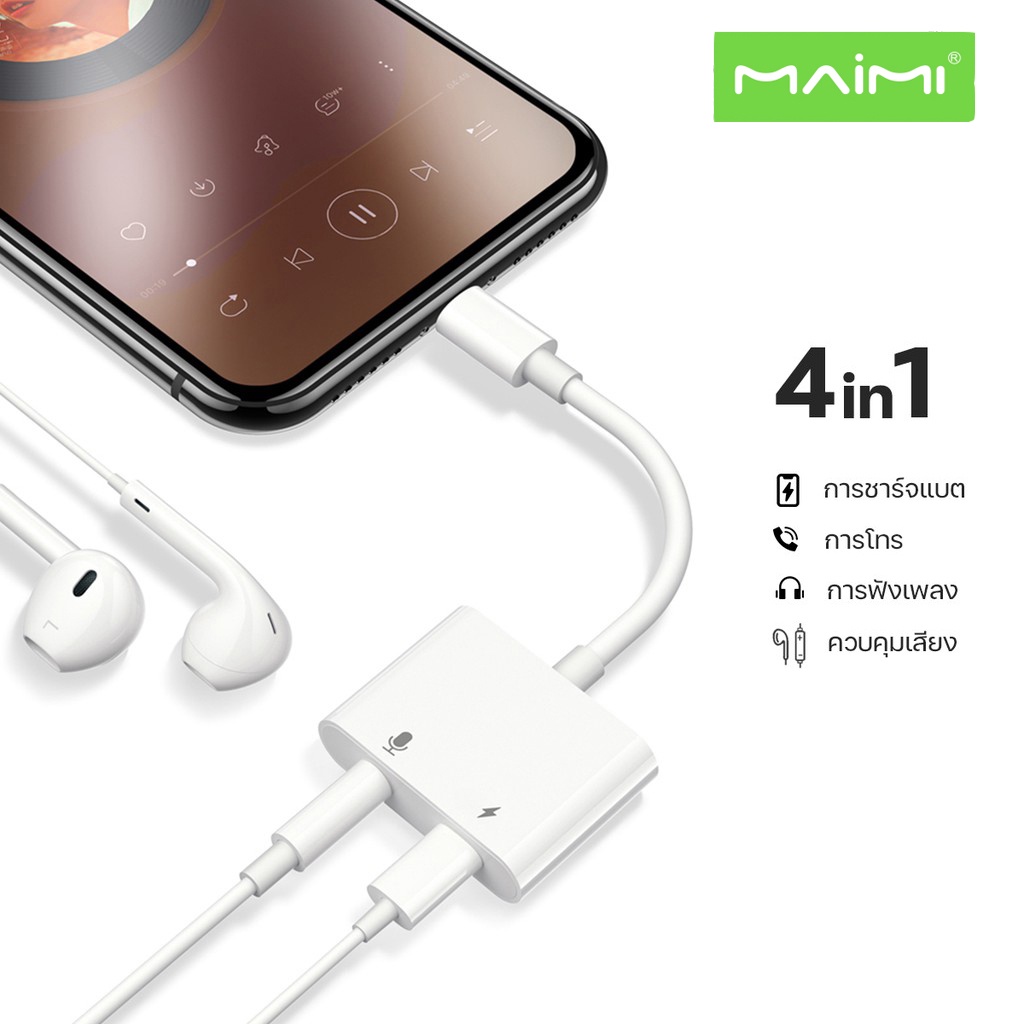 อะแดปเตอร์สำหรับไอโฟน หางหนู สายแปลงต่อหูฟัง 3.5มม พร้อมชาร์จไฟ อะแดปเตอร์หูฟัง 4-in-1 ที่แปลงหูฟัง