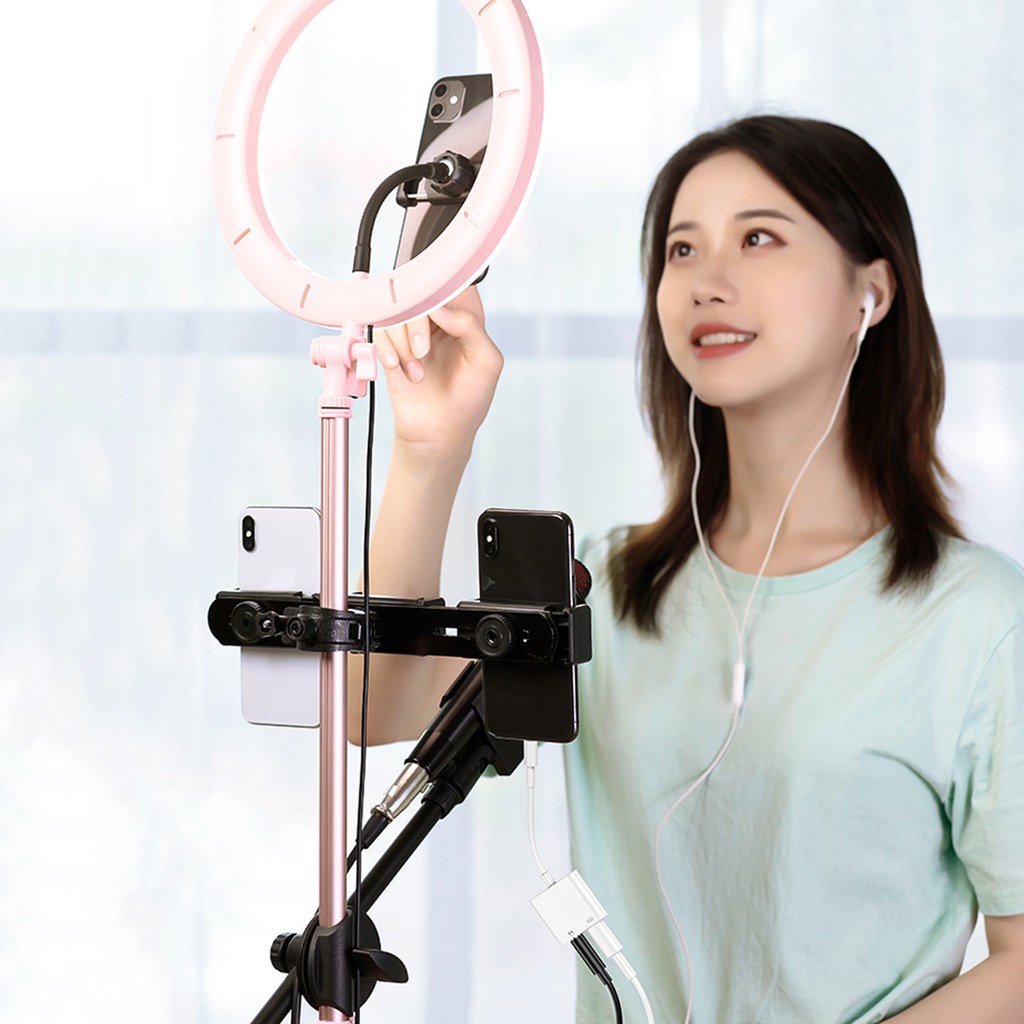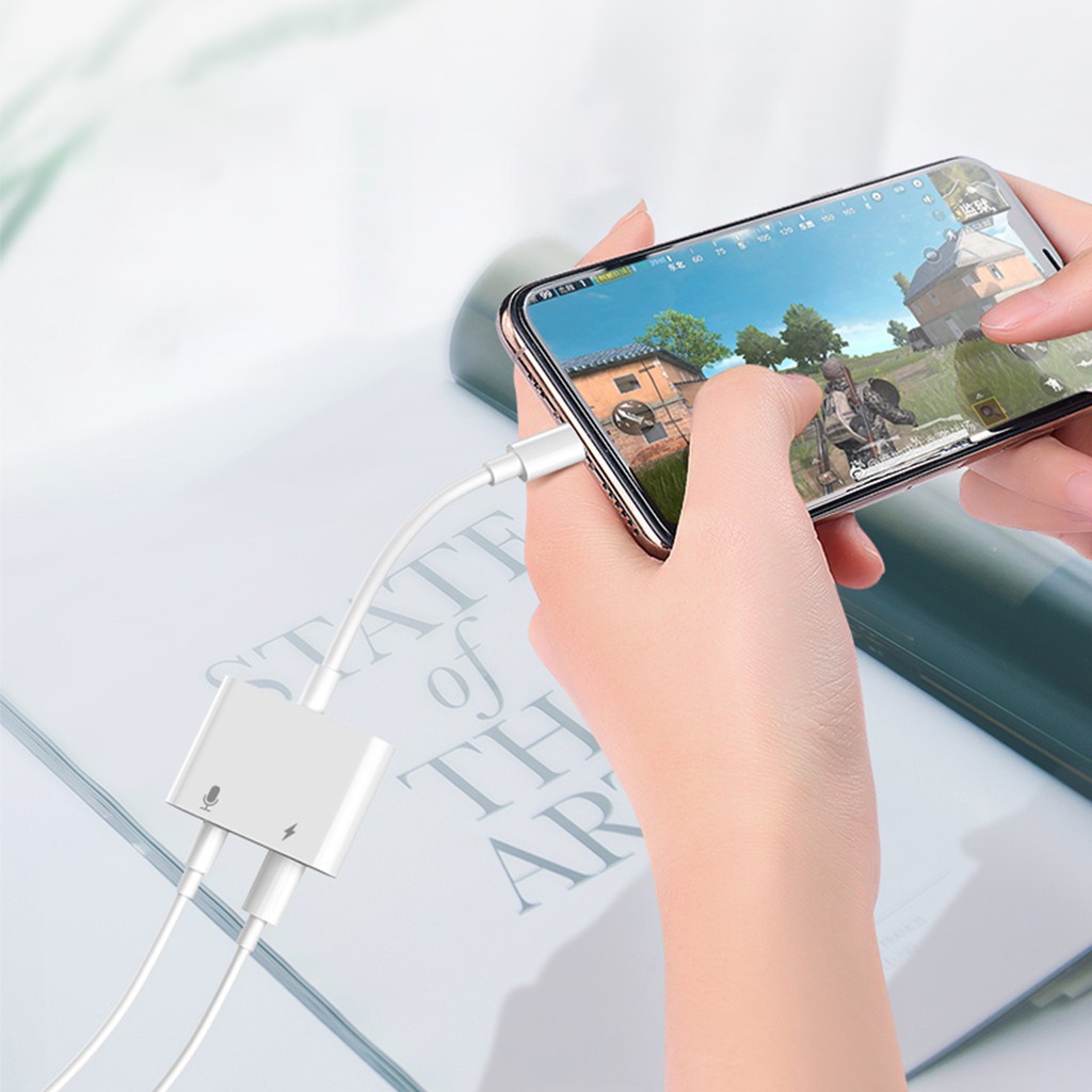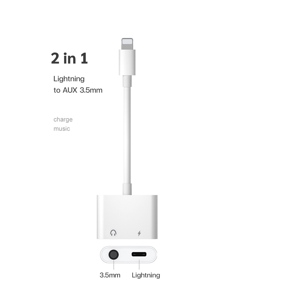 อะแดปเตอร์สำหรับไอโฟน หางหนู สายแปลงต่อหูฟัง 3.5มม พร้อมชาร์จไฟ อะแดปเตอร์หูฟัง 4-in-1 ที่แปลงหูฟัง