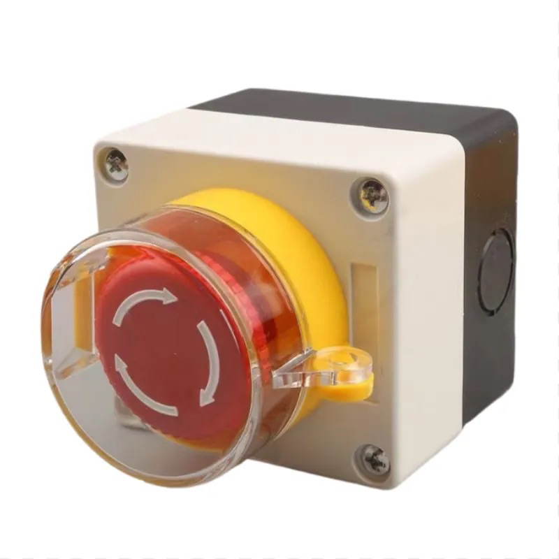 กล่องพลาสติก+ฝาครอบกันน้ำ +สวิตซ์ฉุกเฉินสีแดงป้ายสวิทช์ปุ่มกด DPST ปุ่มหยุดฉุกเฉิน SwitchAC 660V 10A NO+ NC LAY37-11ZS