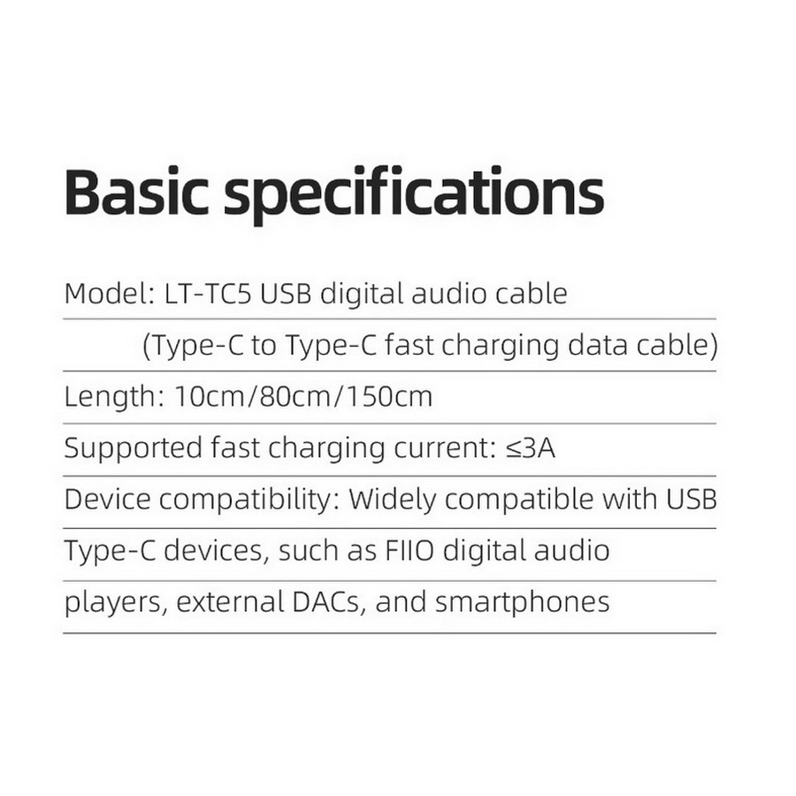 [-ประกันศูนย์ไทย-] FiiO LT-TC5 สายชาร์จ/สายดาต้า หัว TypeC เป็น TypeC สำหรับเครื่องเสียง DAP, DAC, Smartphone