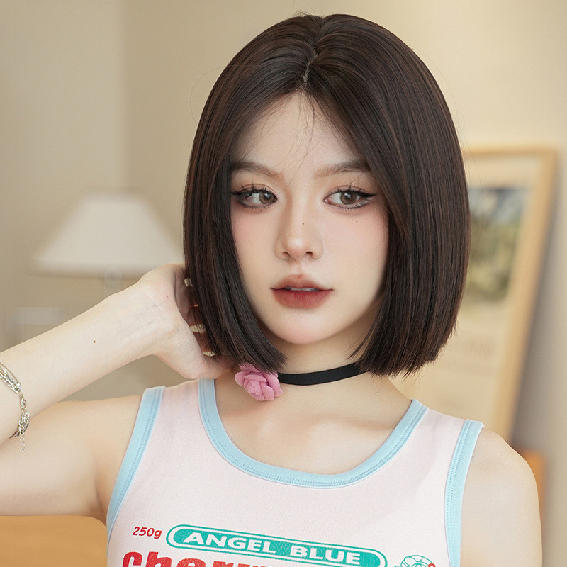วิกผมหญิงกลางผมสั้นกลางลายจุดหัวเต็มวิกผมสไตล์เกาหลีวิกผมเต็มหมวก