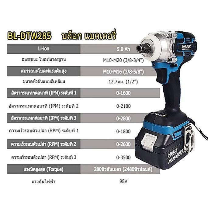 BERALA BL-DTW285 บล็อกลมไร้สาย สว่านบล็อคลมแบตเตอรี่ สว่าน บล็อคลม ไร้สาย Cordless Impact Wrench