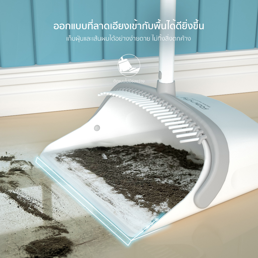 RANDY M9 ชุดไม้กวาด มีแปรงในตัวพร้อมที่ตักขยะ ดีไซน์ใหม่ ขจัดผมพันกันสองครั้ง ไม้กวาดพร้อมที่ตักผง ไม้กวาดพร้อมที่ตักขยะ