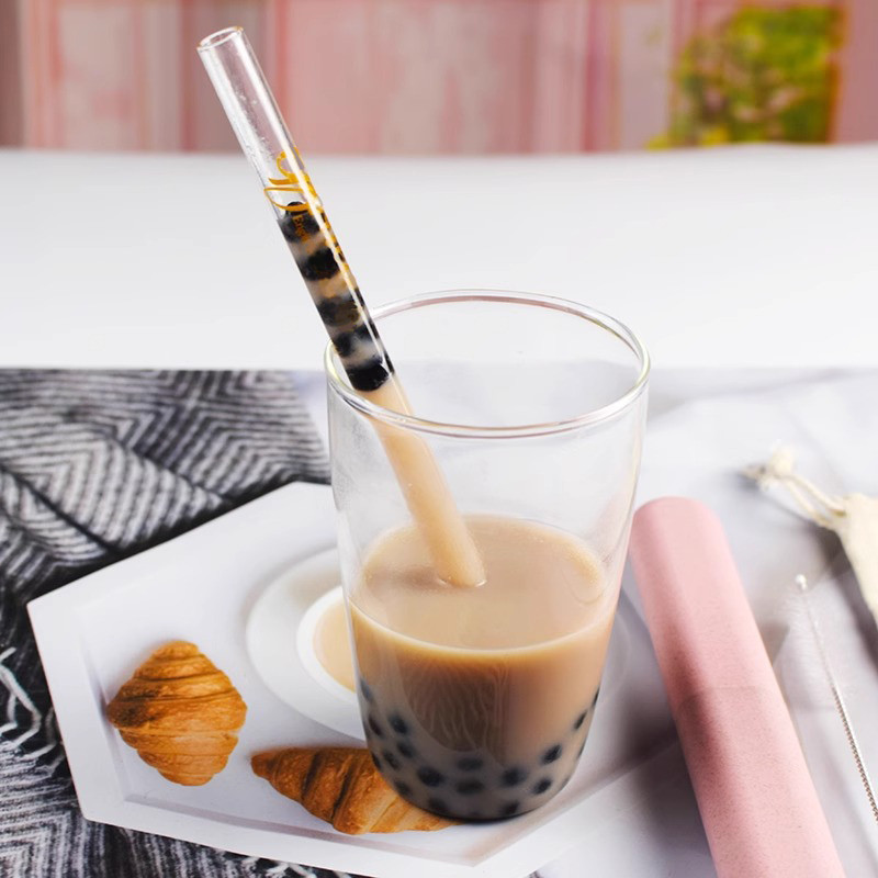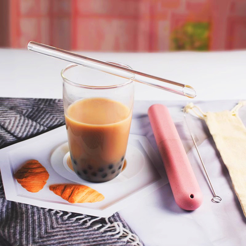 INS หลอดดูดน้ำ แบบแก้วใส ปลายเฉียง ใช้ดื่มชานม ชาไข่มุข ความยาว 20 cm glass straw