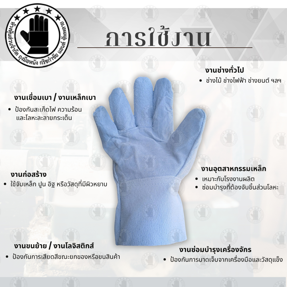 ถุงมือหนังฝ่ามือหนังท้อง หลังมือและขอบถุงมือหนังหมู หนังเกรดคุณภาพทั้ง 2 ชนิด รุ่น CP01012 (บรรจุ 12คู่) หนา เหนียว