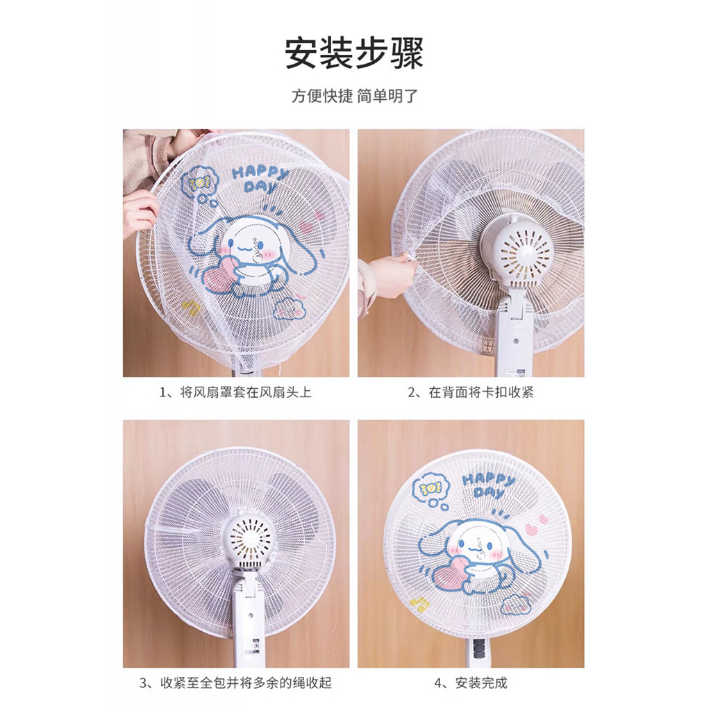 ฝาครอบพัดลมในบ้าน Kuromi Cinnamoroll การป้องกันเด็ก Winnie the Pooh ป้องกันการหนีบ My Melody Pochacco พัดลมตั้งพื้นสำหรับเด็กและทารก ตาข่ายป้องกัน พัดลมตั้งโต๊ะแบบสากล