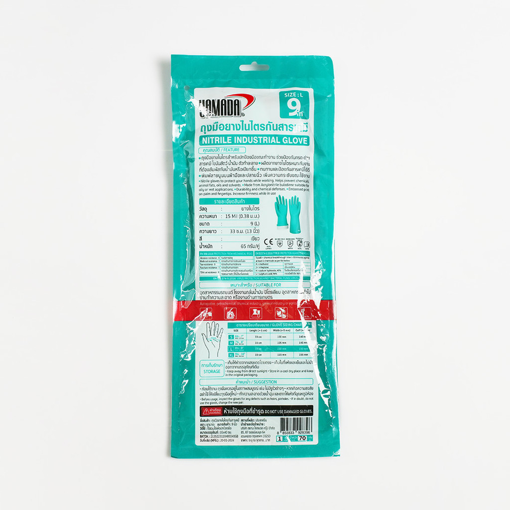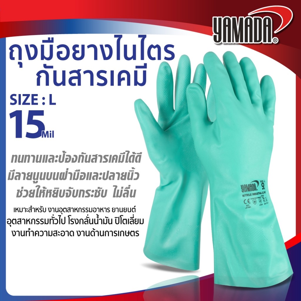 ถุงมือยาง ไนไตร กันสารเคมี 15 มิล ไซส์ L YAMADA ป้องกันมือจากสารเคมี ไขมันสัตว์ น้ำมัน ตัวทำละลาย bonus