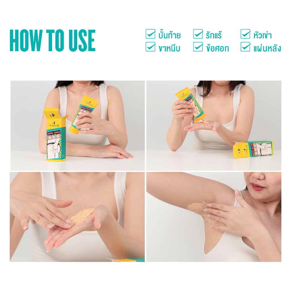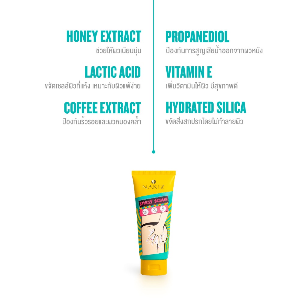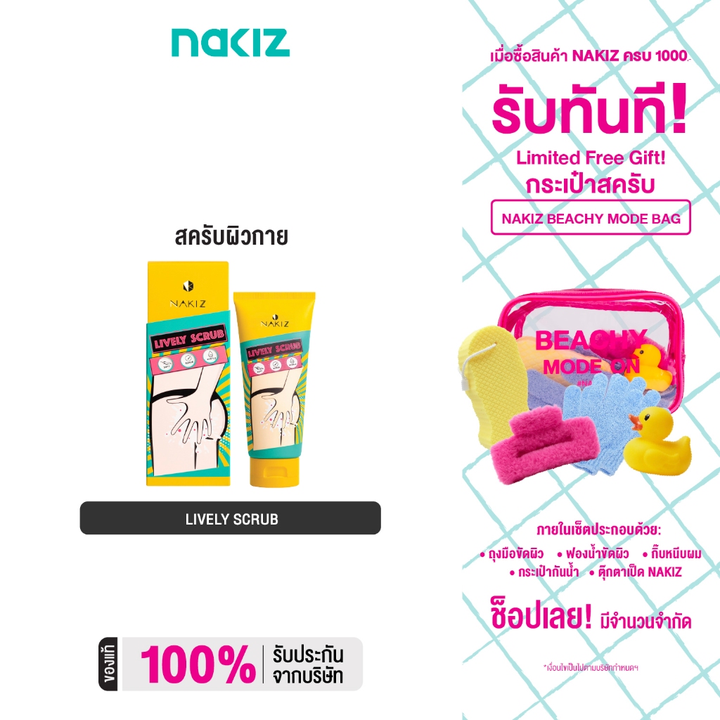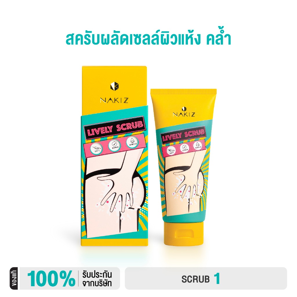NAKIZ LIVELY SCRUB - สครับ ก้นดำ รักแร้ดำ ขาหนีบดำ สิวหลัง หัวเข่าดำ ศอกดำ ลบเลือนรอยดำ แตกลาย คอดำ