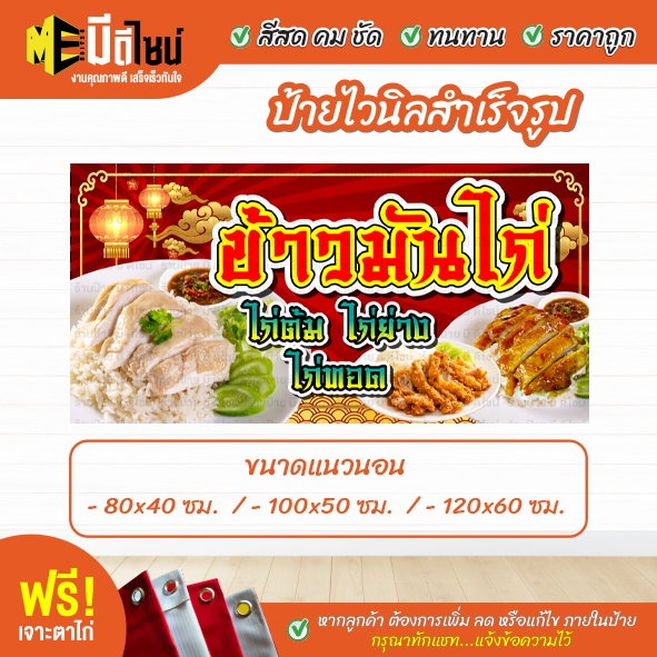 ป้ายร้าน ป้ายไวนิล ข้าวมันไก่ ไก่ต้ม ไก่ย่าง ไก่ทอด สีคมชัด ทนทาน ราคาถูกกกกก