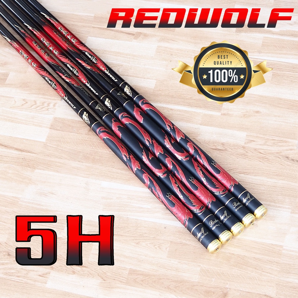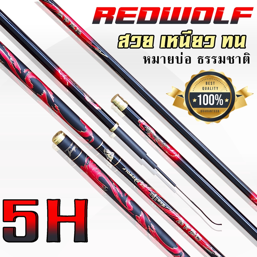 คันชิงหลิว REDWOLF เวท 5H แถม !! ปลายสำรอง 1 ชิ้น วัสดุคาร์บอนไฟเบอร์ เหนียว เบา แข็งแรง เหมาะกับงานตกปลาสายบ่อ สายธรรมช