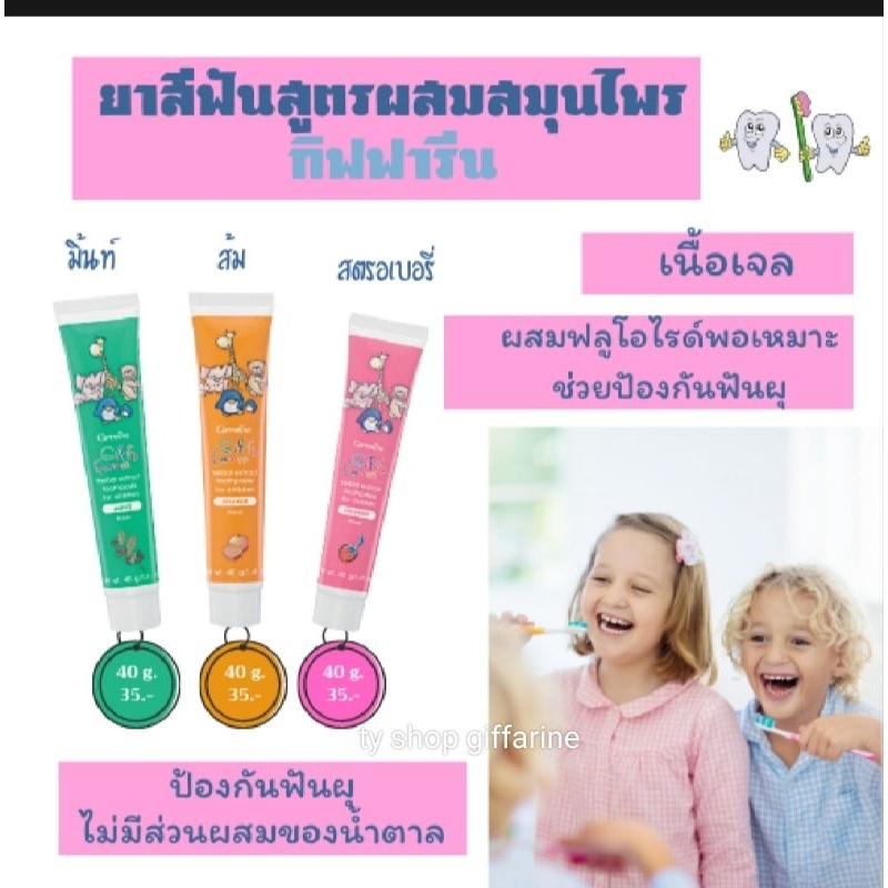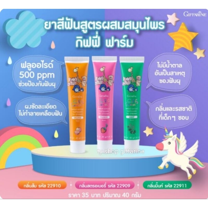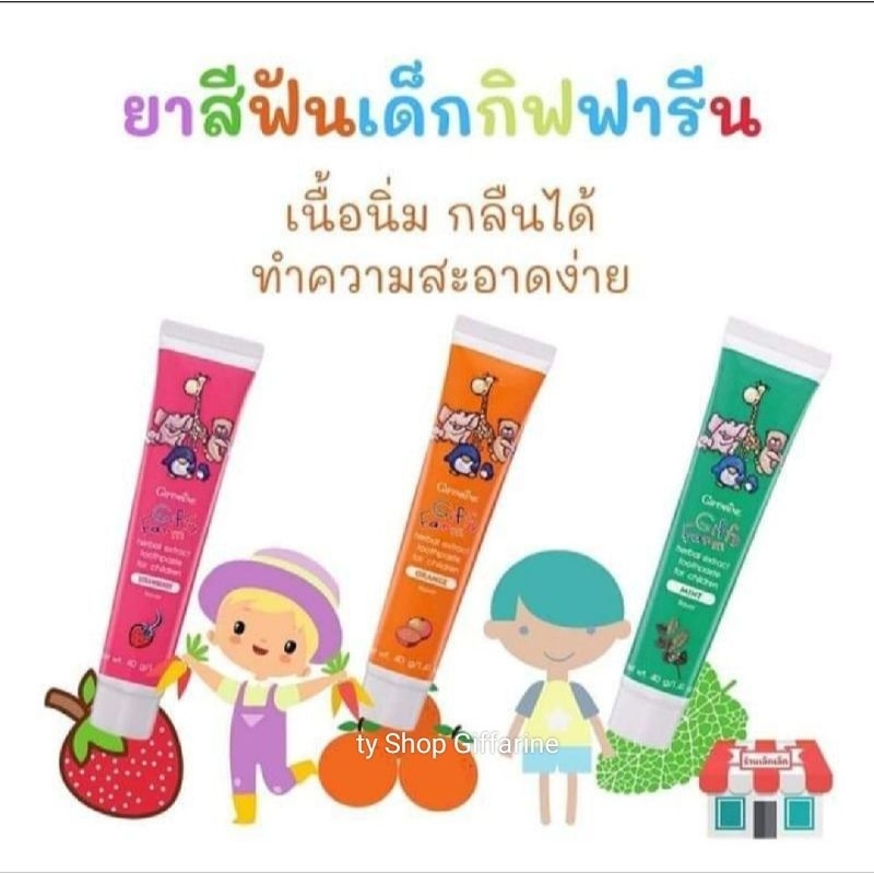 ยาสีฟันเด็ก กิฟฟารีน กิฟฟี่ ฟาร์ม ยาสีฟันสูตรผสมสมุนไพรช่วยป้องกันฟันผุ และไม่มีส่วนผสมของนํ้าตาล