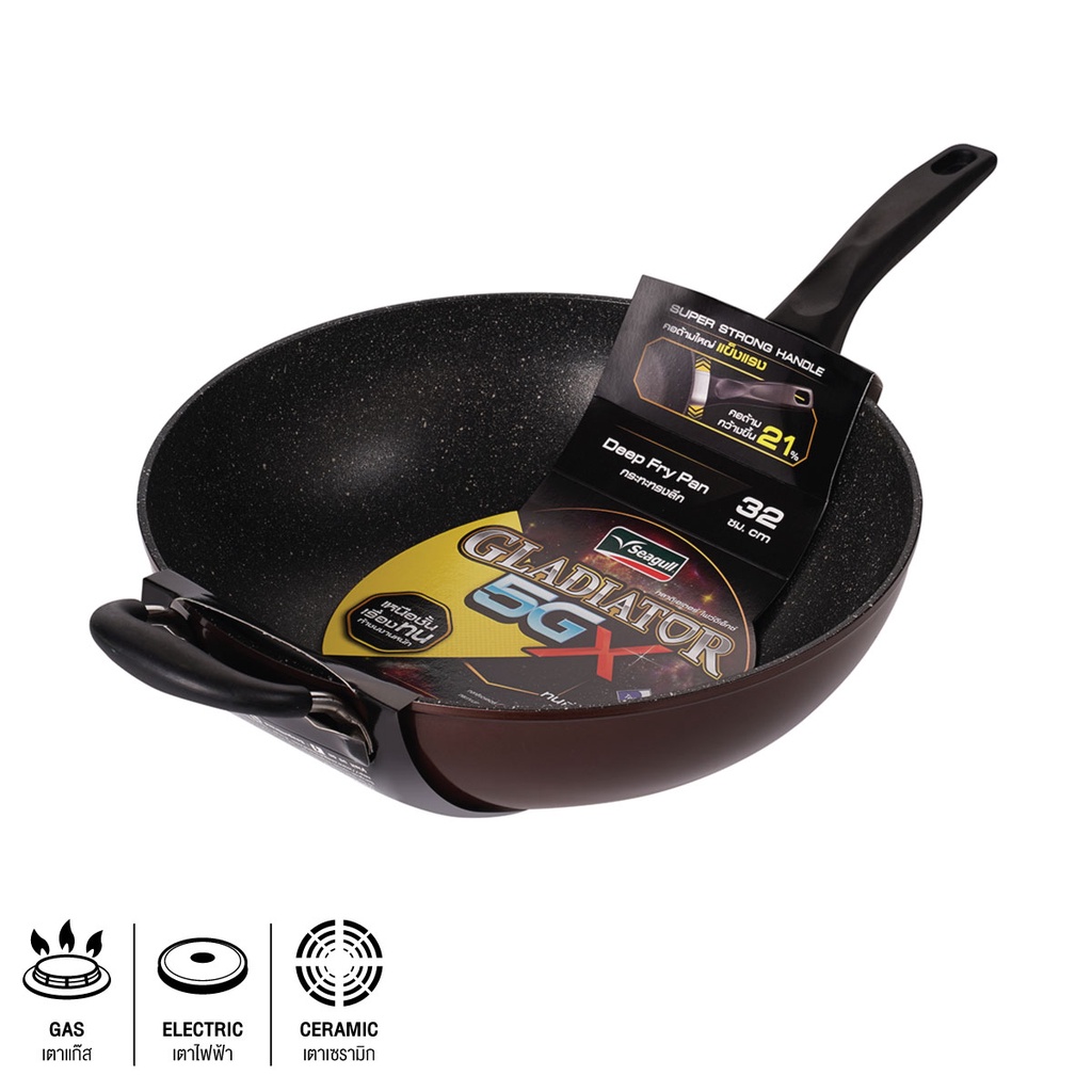 Homehapp กระทะด้ามนอนสติ๊กทรงลึก SEAGULL รุ่น Gladiator 5GX ขนาด 32 ซม. สีบราวน์เมทาลิก