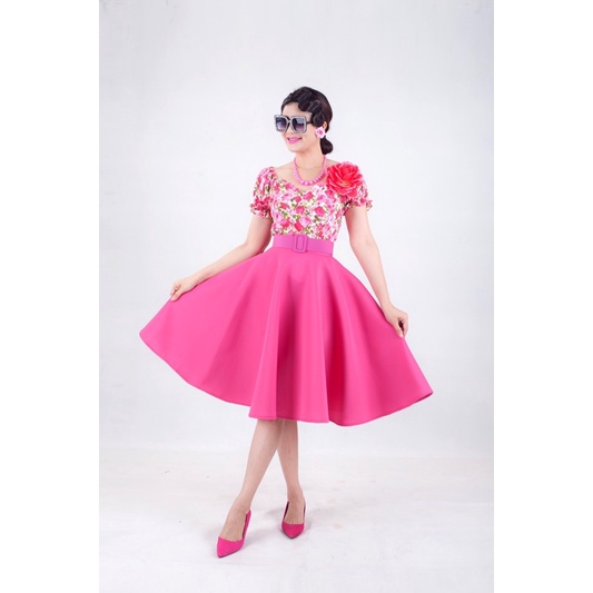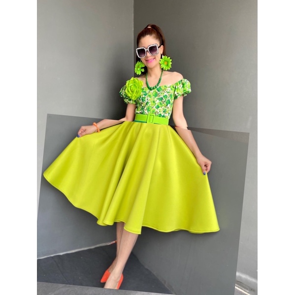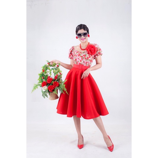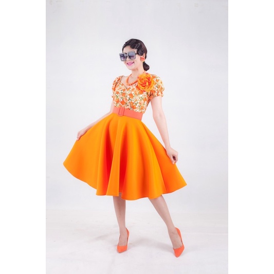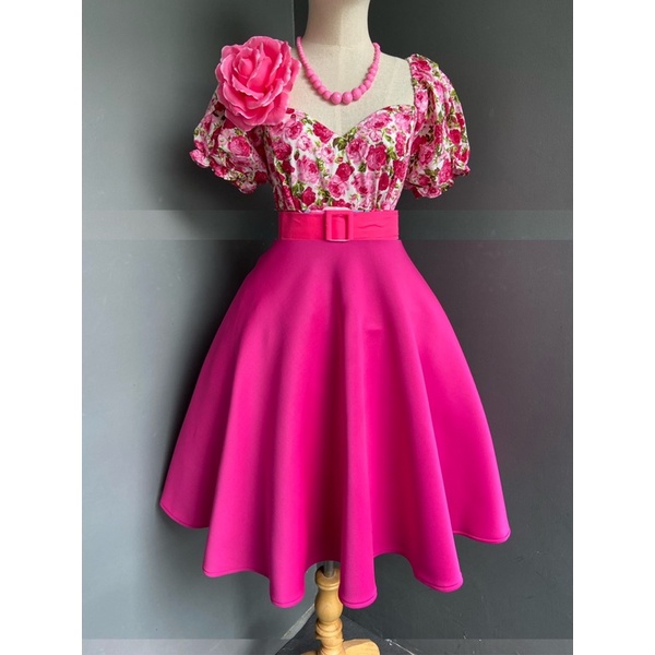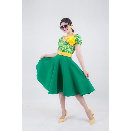 เซตเสื้ อแขนตุ๊กตากระโปรงสีพื้น ชุดย้อนยุค ชุดทองกวาว (ครบเซต)