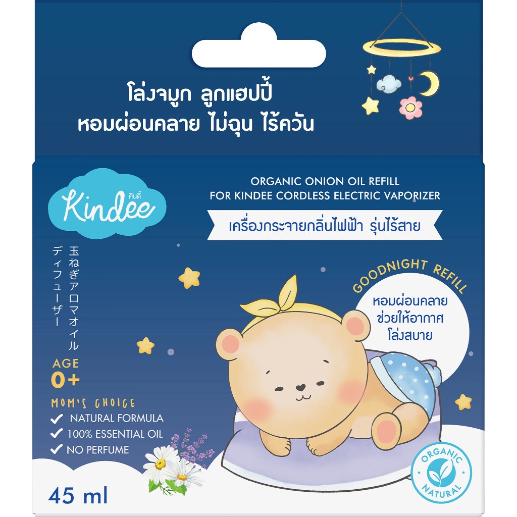 Kindee เครื่องกระจายกลิ่นไฟฟ้า สูตร Goodnight พร้อมรีฟิลหอมแดง