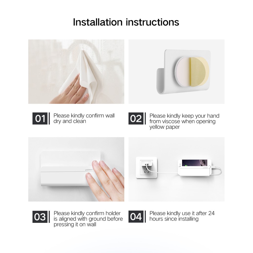 Ugreen Wall Mounted Phone Holder Charging Stand 3M Adhesive(30394,40938)