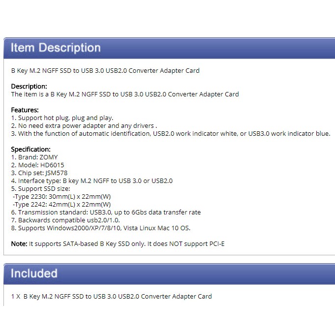 B Key M.2 NGFF SSD to USB 3.0 USB2.0 Converter Adapter Card (HD6015-1B)(สำหรับ m.2sataเท่านั้น ไม่รองรับNVME และMsata