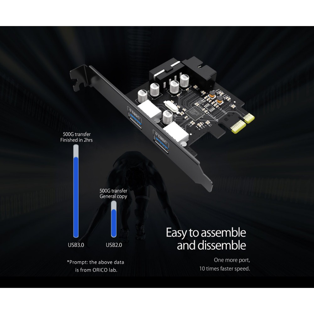 (PME-4UI) ORICO PCI Express Expansion Card USB 3.0 PCI-E 2 Port พร้อม สายPower และขาlow profile