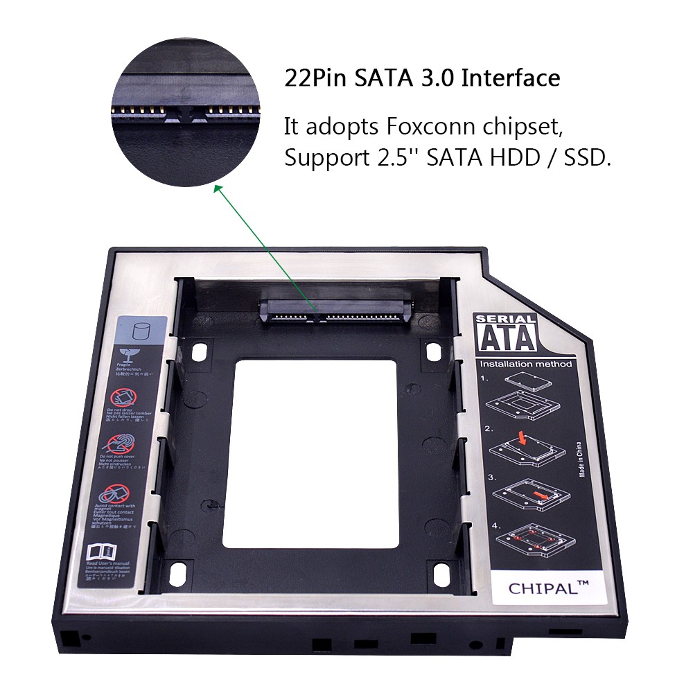 (12.7mm) CHIPAL Universal SATA 3.0 2nd HDD Caddy 12.7mm for 2.5" SSD HDD Case Enclosure for Notebook CD-ROM DVD-ROM