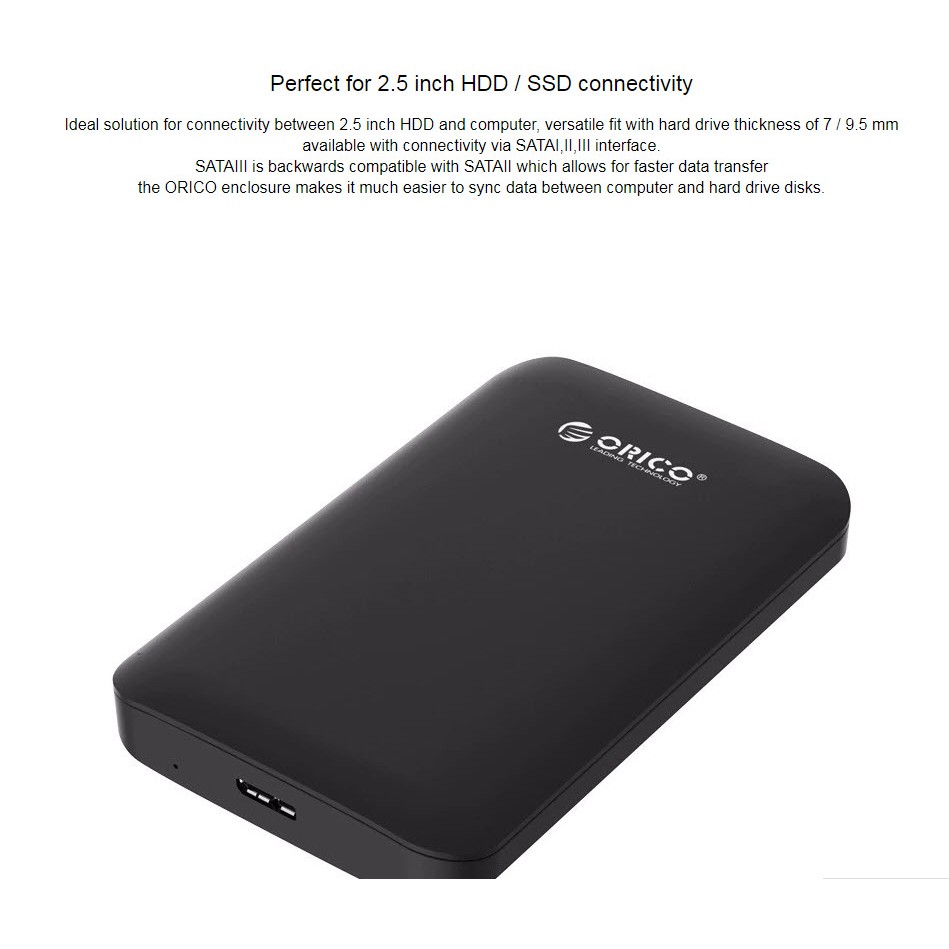 ORICO (2589S3-BK) 2.5 inch USB3.0 Hard Drive Enclosure SuperSpeed 5Gbps Support SATA I,II,III For Windows/Mac/Linux