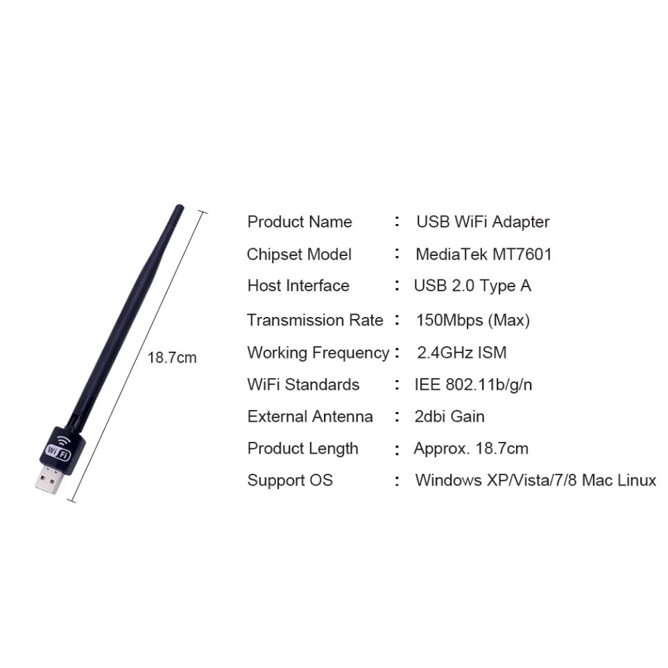 (พร้อมแพ็กเจและแผ่นไดร์เวอร์) 150Mbps USB WiFi Receiver Wireless Network Card for XP Vista Windows 7 Linux MAC OS X