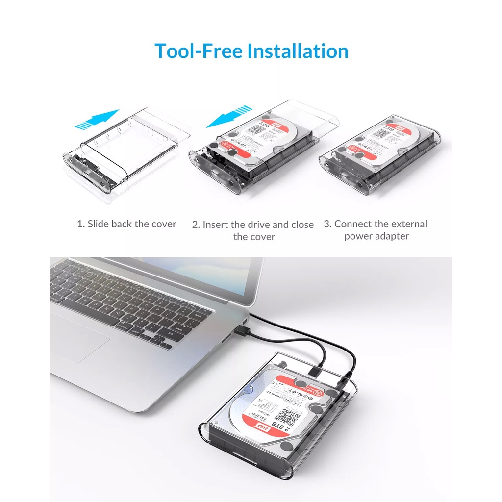 ORICO (3139C3-EU/US Plug ) Transparent HDD Enclosure Case for 2.5 3.5 HDD SSD SATA to USB 3.1 Type C