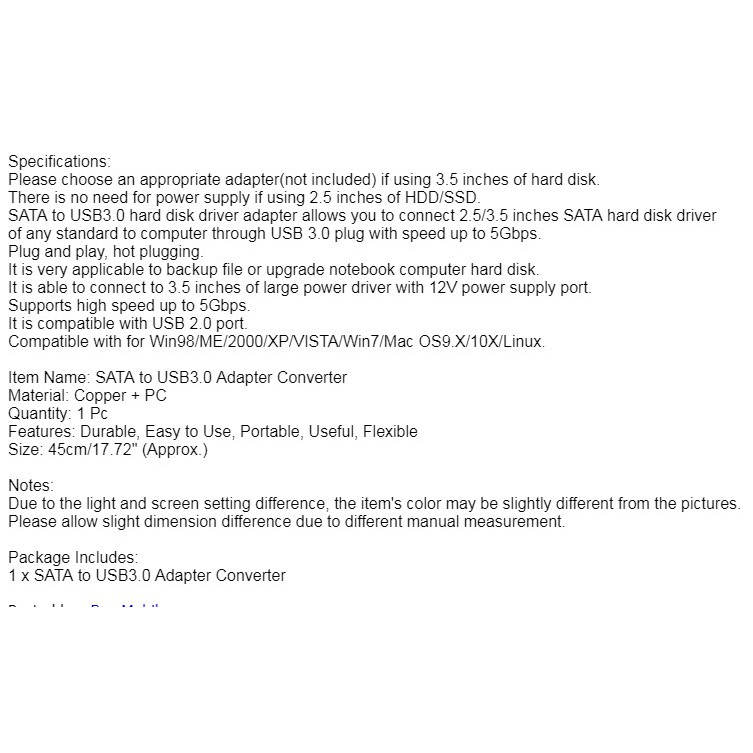 SATA to USB 3.0 HDD SSD Hard Drive Disk Converter Cable Adapter (ไม่รวมDC Adapter )