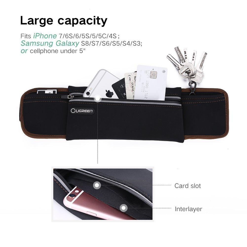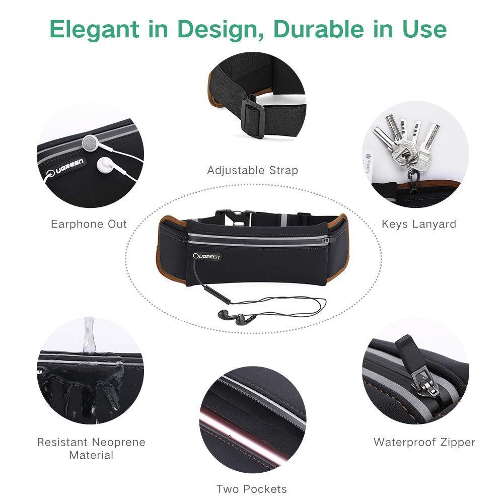 UGREEN (20818) Running Belt Bag for iPhone X, iPhone 8, iPhone 7 Plus, iPhone 6S 6 Plus, SamsungS9 S8 S7 S6, Waterproof