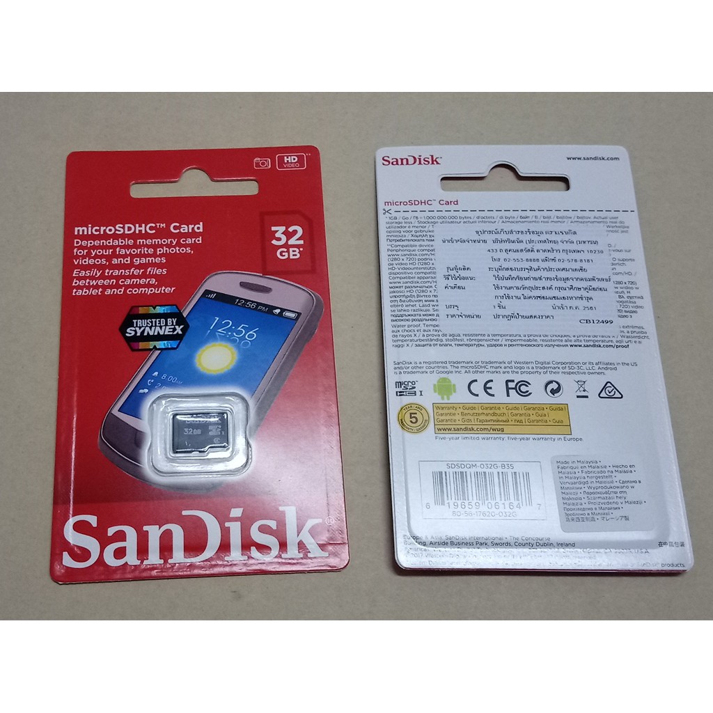 (ประกันsynnexถึงปี2023) Sandisk Micro SD Class 4 32GB