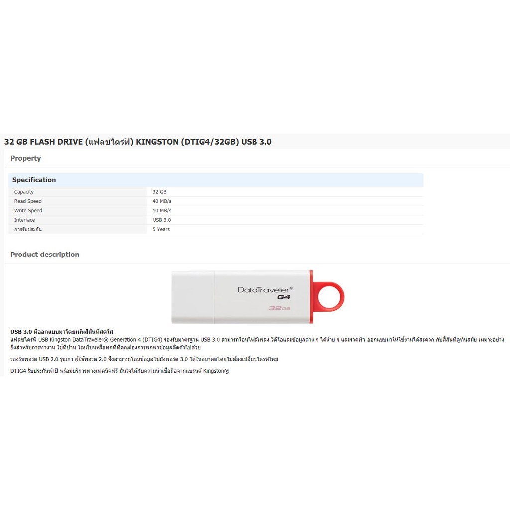 (ประกัน synnex)32 GB FLASH DRIVE (แฟลชไดร์ฟ) KINGSTON (DTIG4/32GB) USB 3.0