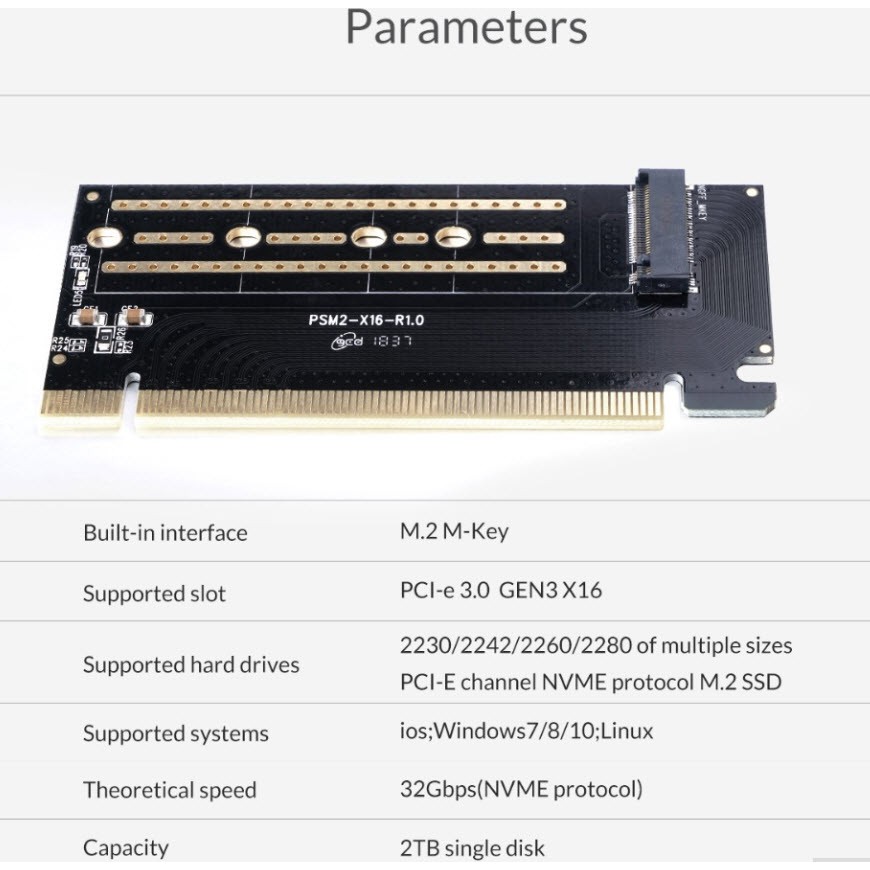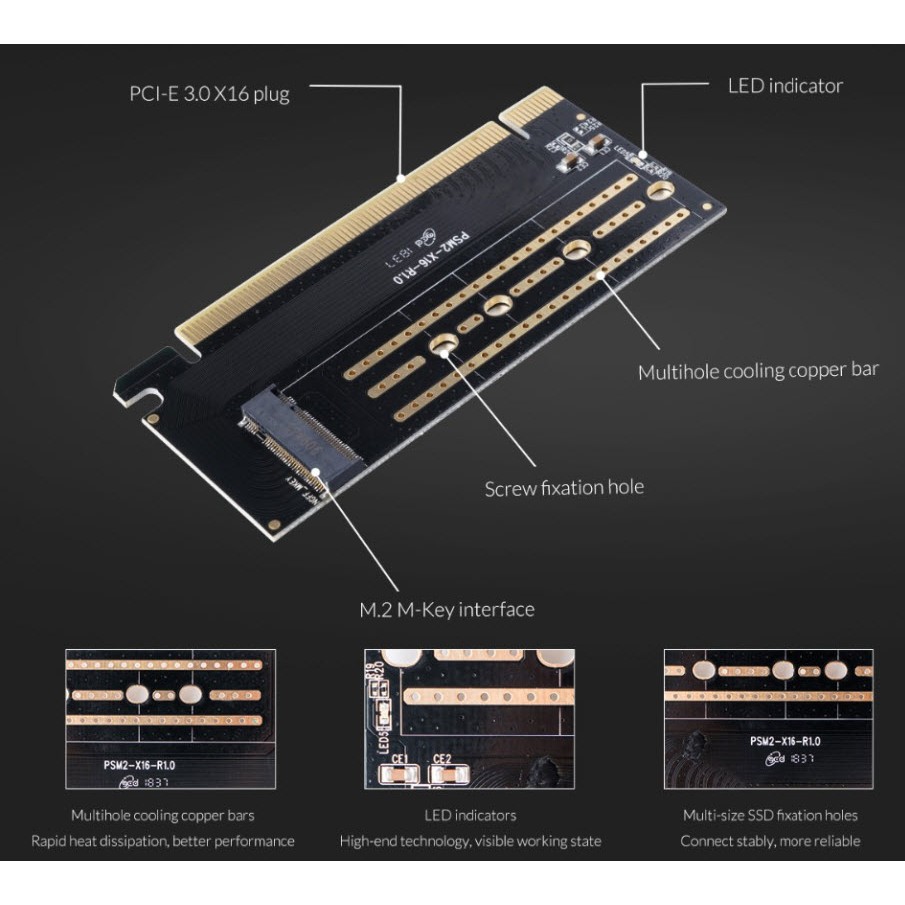 ORICO (PSM2-X16) PCI-E Expansion Post Card M.2 NVME to PCI-E 3.0 X16 Expansioncard M.2 M-key