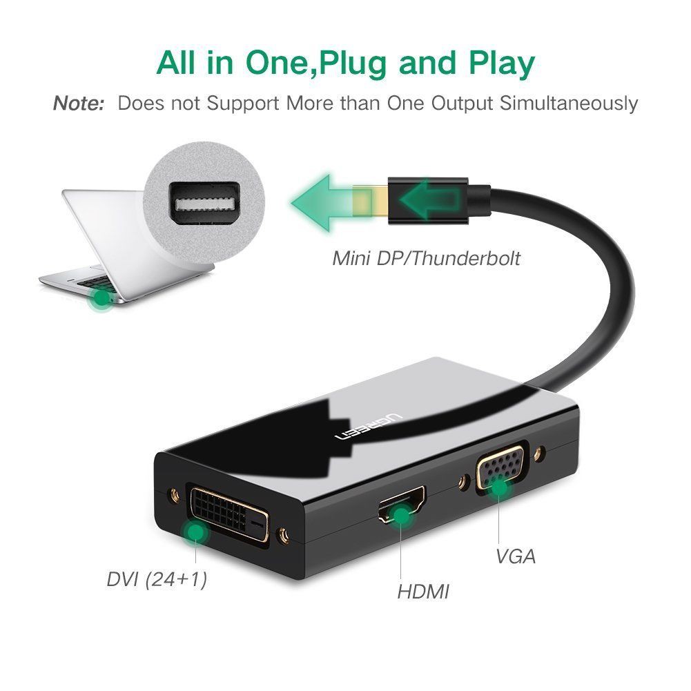 UGREEN Thunderbolt Mini Display Port DP to HDMI VGA DVI Adapter for MacBook 4K (20418,20417)