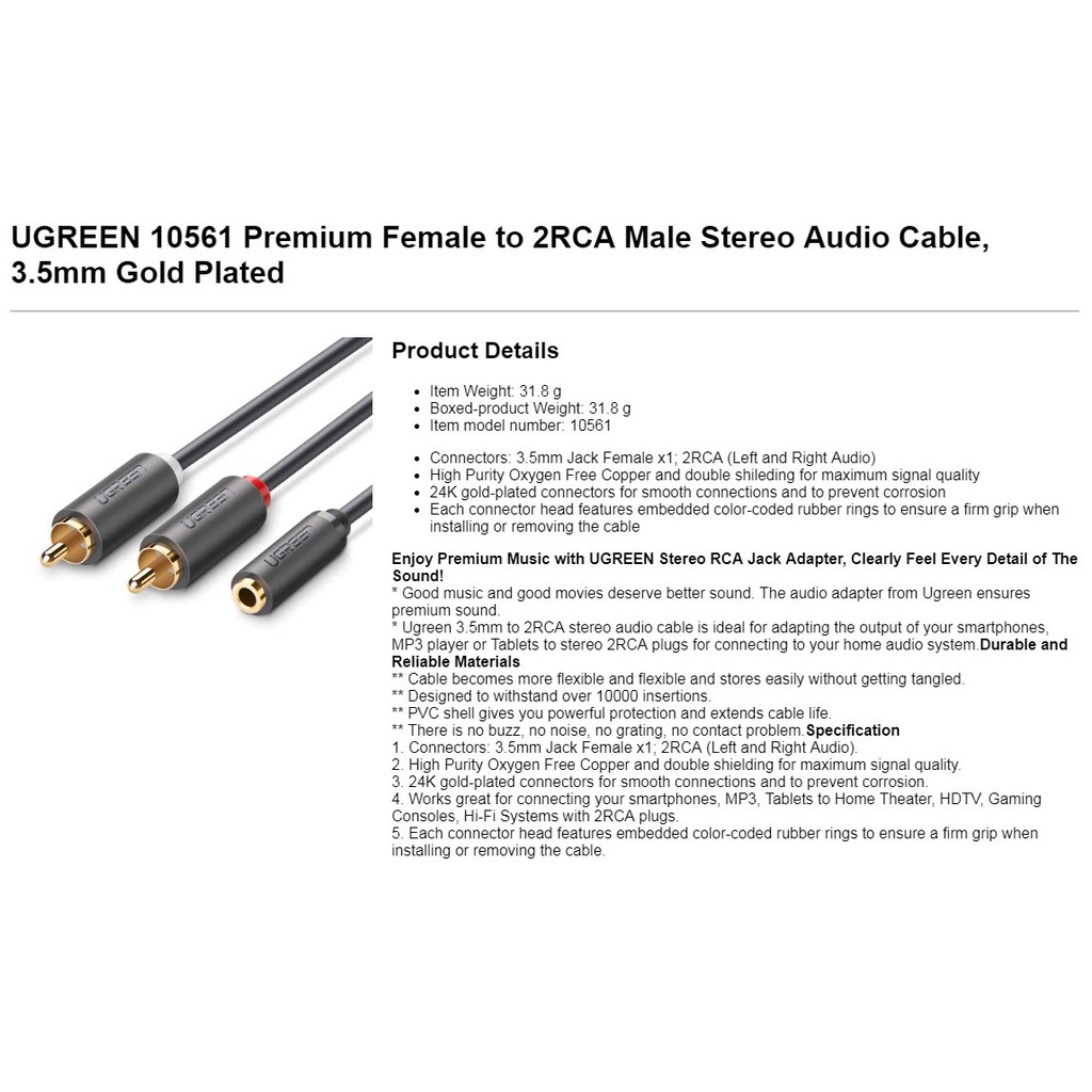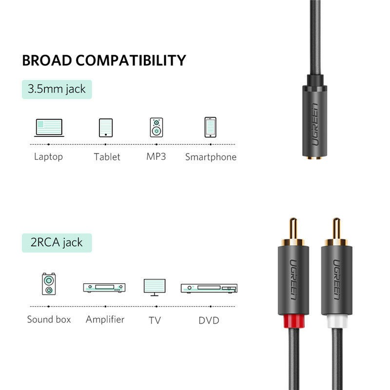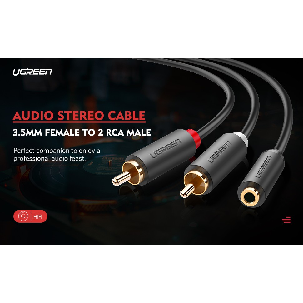 Ugreen(AV102,10561) 3.5mm Stereo jack Female to 2 RCA Male Audio Cable 20cm for iPod, iPhone
