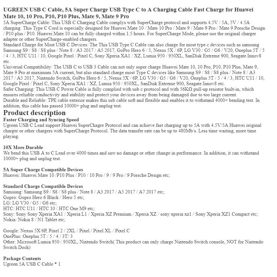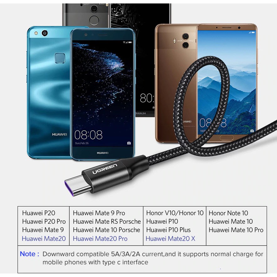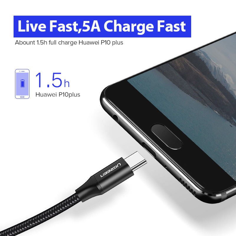 Ugreen 6A Nylon/TPE USB Type C Cable for Huawei USB 3.1 Fast Charging Data Cable(เช็ครุ่นด้วยถึงจะได้เต็มสปีด)