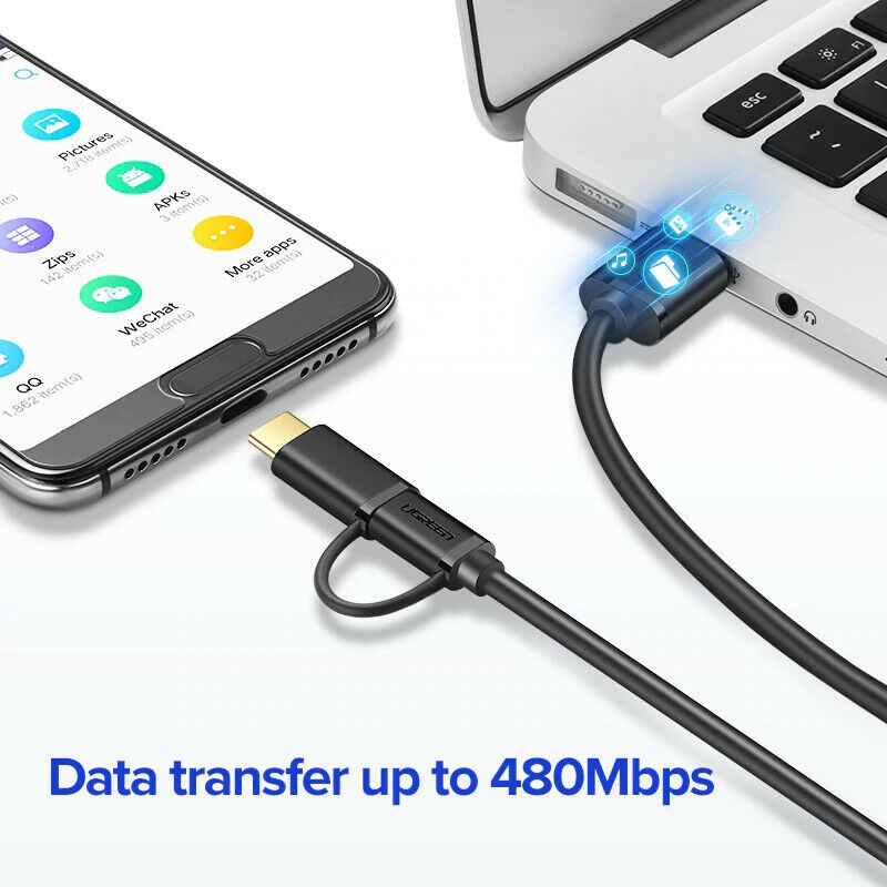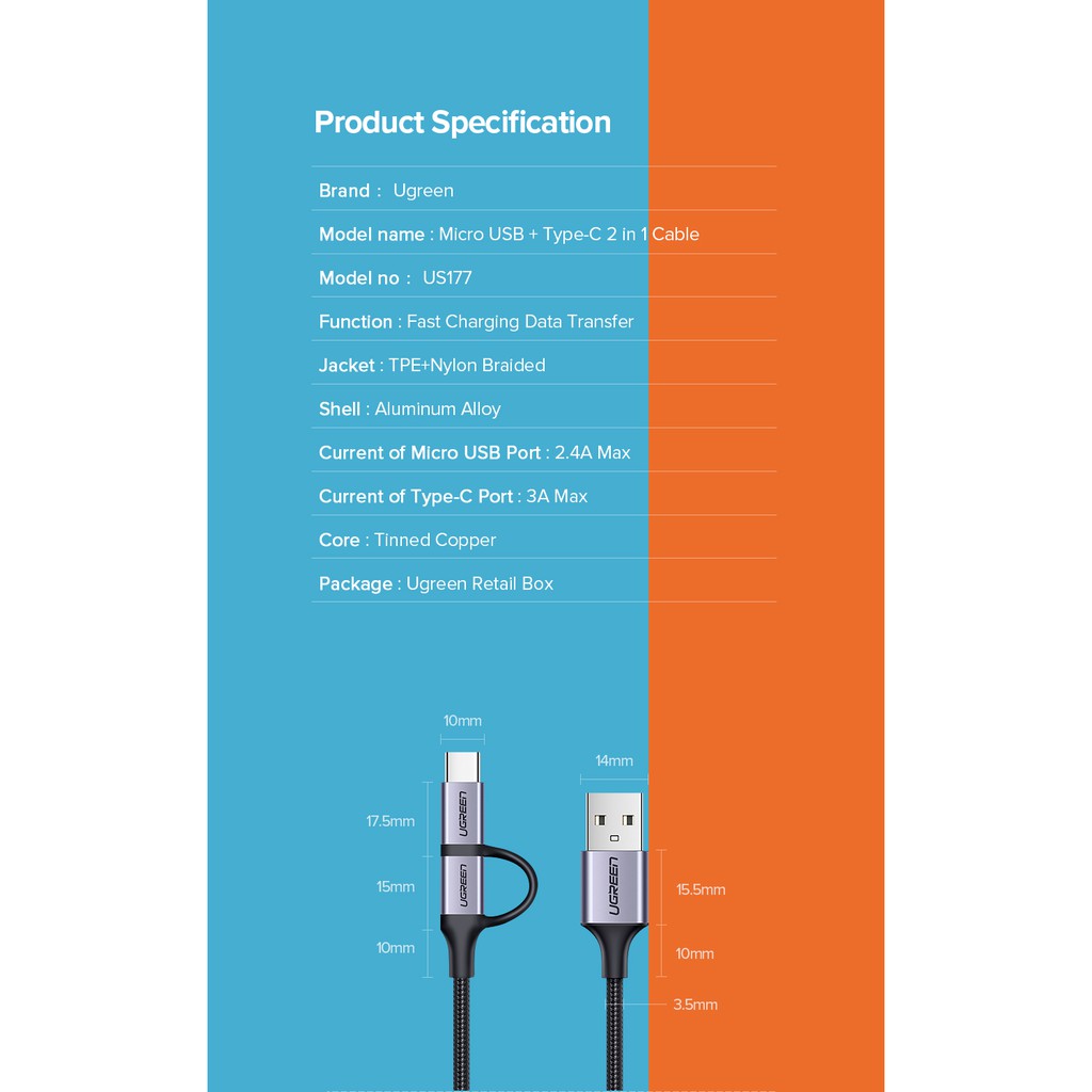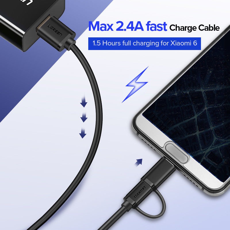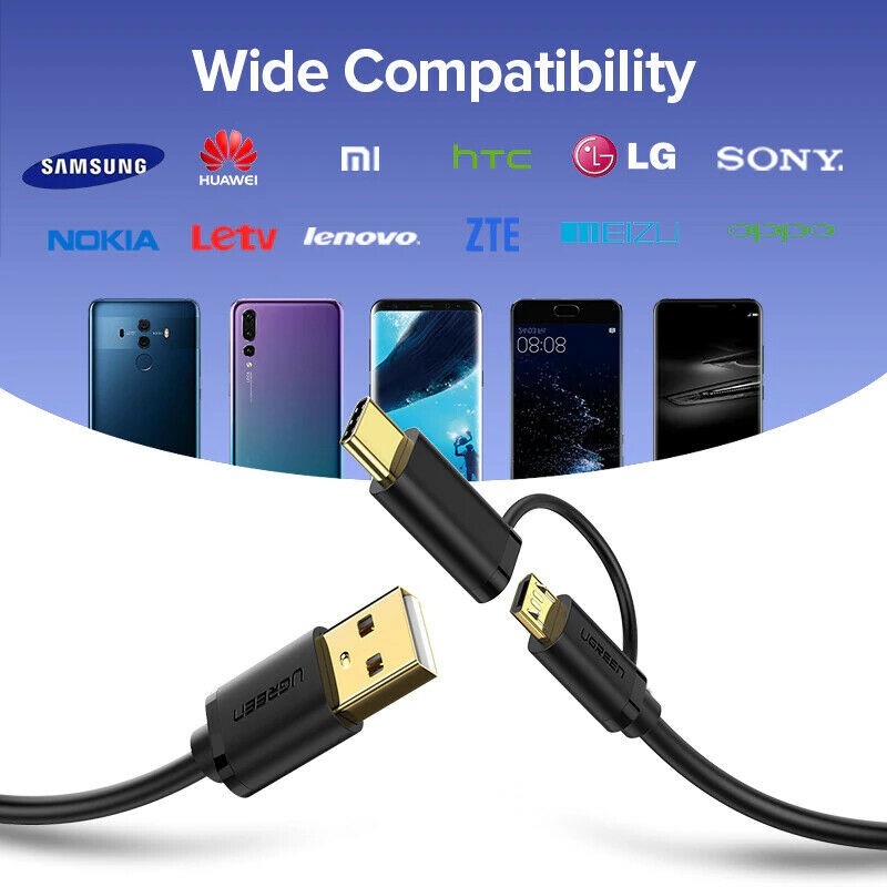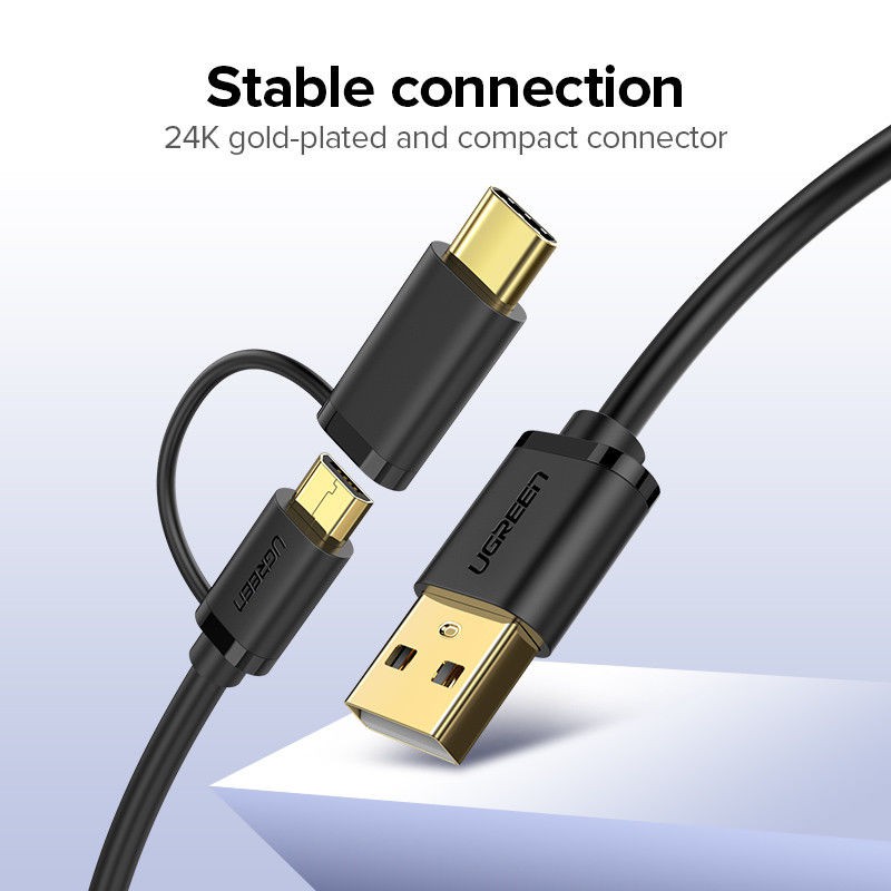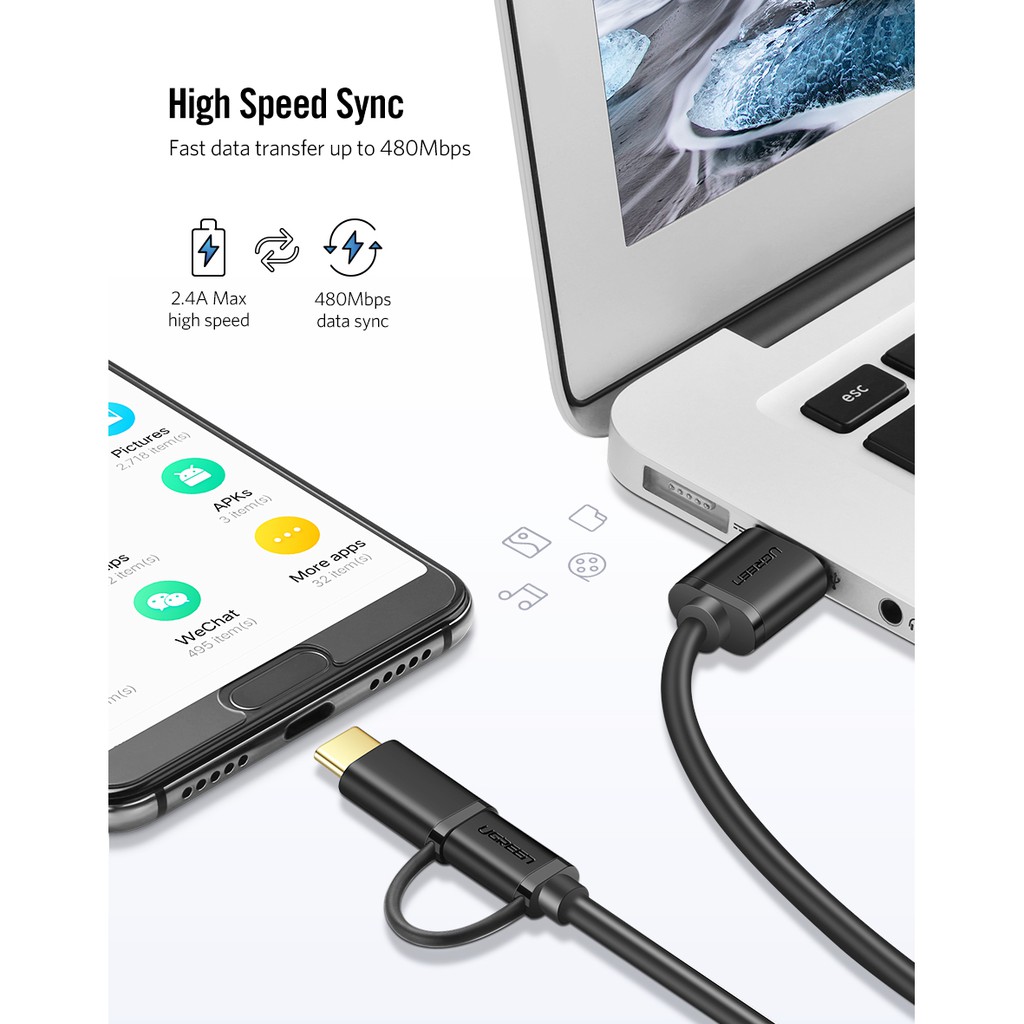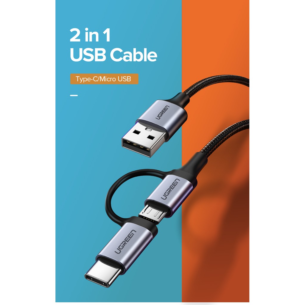 UGREEN (US142,US177) 2 in 1 Micro USB Type C Data Charging Cable For for M.acBook, Samsung, Micro and Type C Smartphone