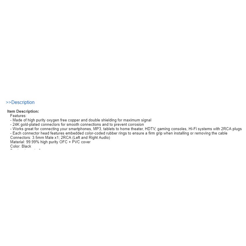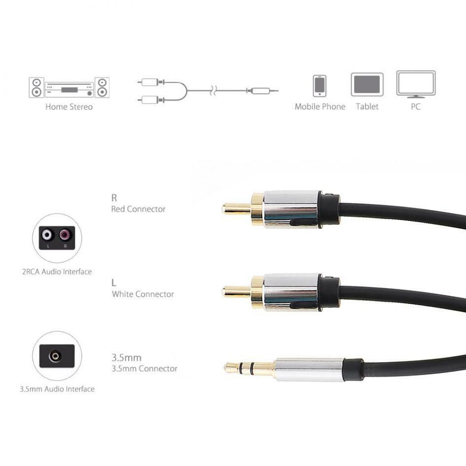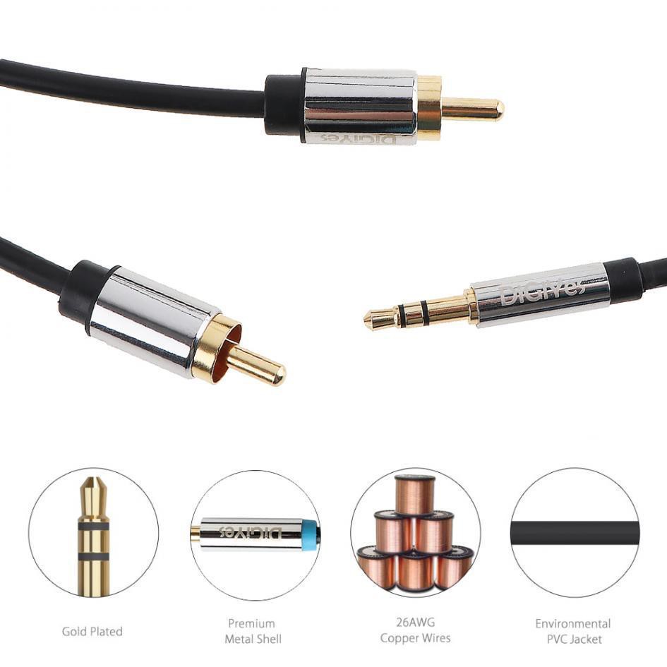 DiGiYes Premium Stereo Audio 3.5mm Aux Jack to 2 RCA M/M Y Cable Gold Plated 1m,1.5m,2m