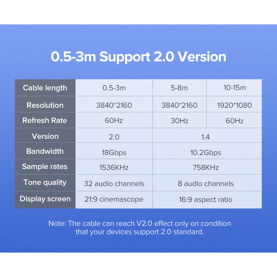 UGREEN 4K*2K@60Hz HDMI Cable HDMI 2.0 HD Clear(60438,60439,60440)