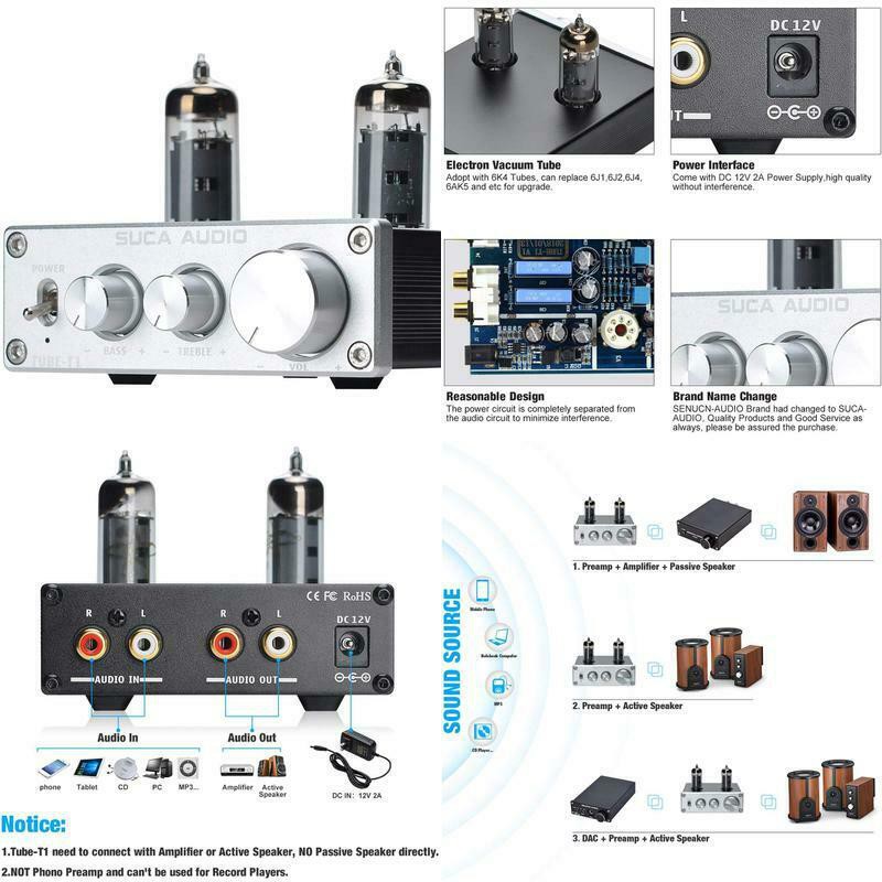 Suca-Audio Tube-T1 Preamplifier, Vacuum Tube Amplifier Buffer Mini Hi-Fi Stereo