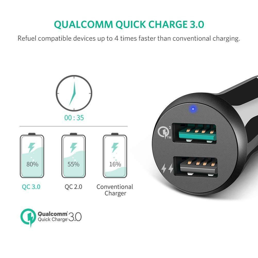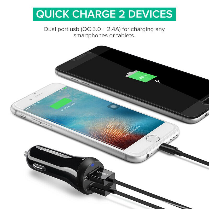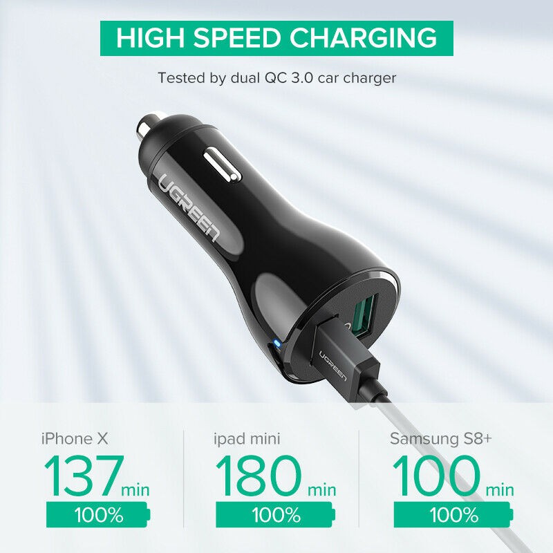 UGREEN (40309) Fast Car Charger Adapter 30W 5.4A Dual USB QC 3.0 for iPhone 8 X Samsung