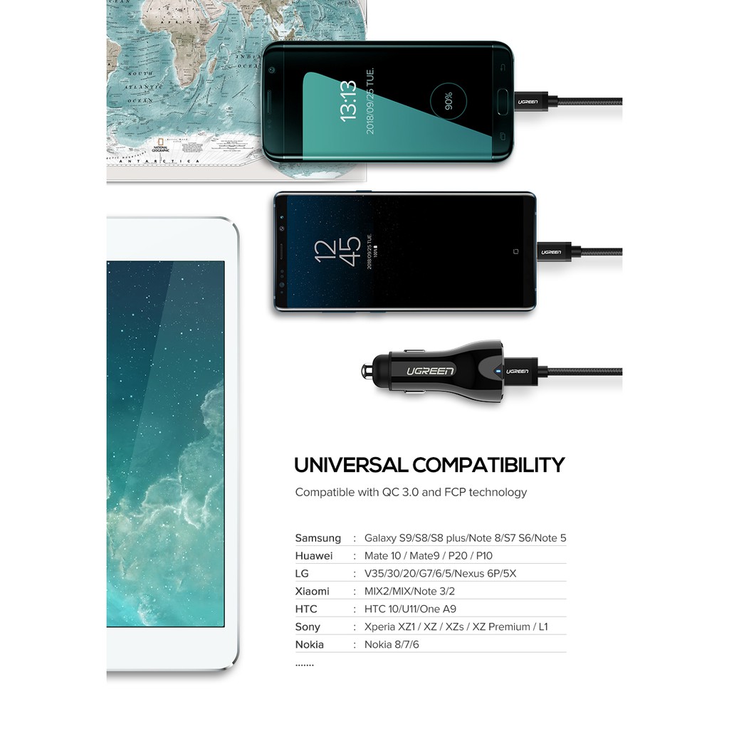 UGREEN (40726) Car Charger Dual QC3.0 Ports Fast Charger