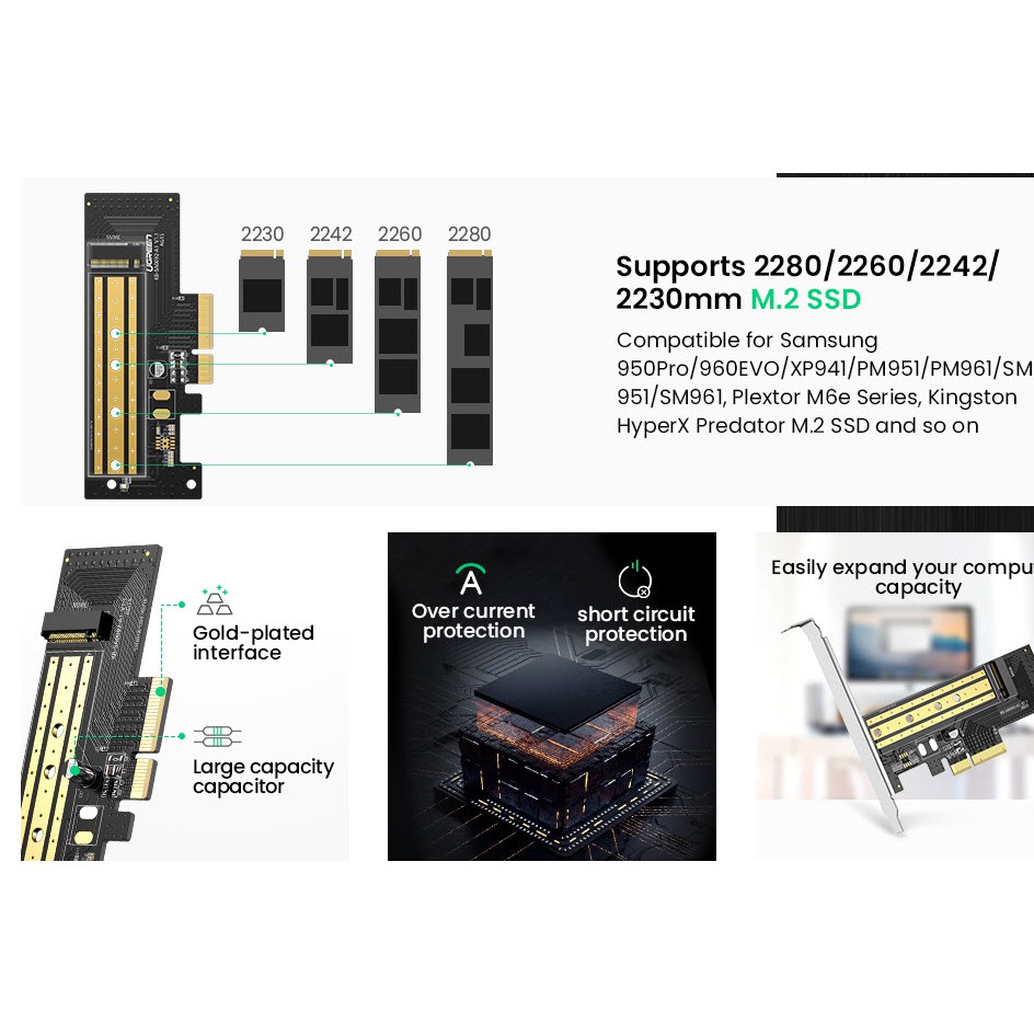 UGREEN(70503,30715) M.2 NVMe to PCI Express 3.0 x4 x8 x16 Adapter Card, Support M Key Solid State