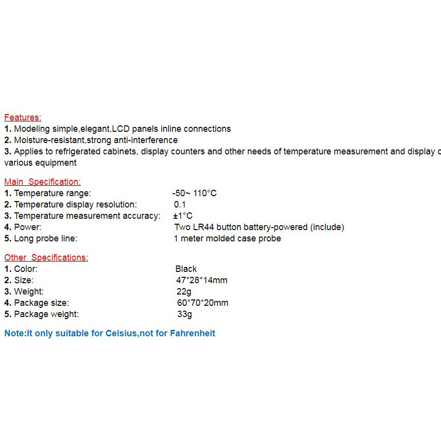 LCD Digital Thermometer for Freezer(สีดำ/สีขาว)