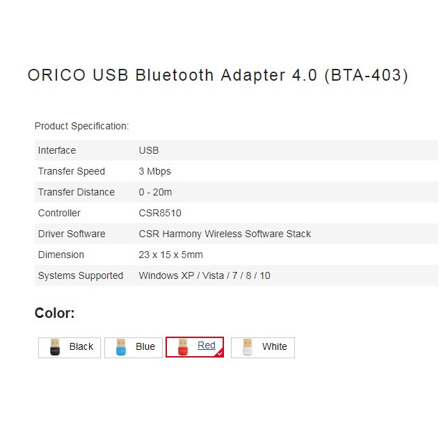 (BTA-403) ORICO USB Bluetooth Adapter 4.0 Red