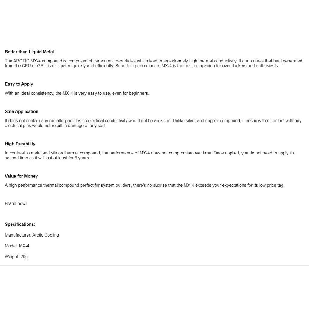 Thermal Compound Arctic Cooling MX-4 ขนาด20 กรัม Thermal Conductivity 8.5 W/(mK) (แพกเกจปี2020)